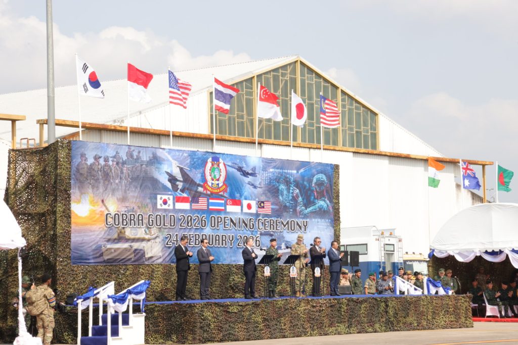 เมื่อเวลา 09.00 น. วันที่ 24 ก.พ.69 พลเอก อุกฤษฎ์ บุญตานนท์ ผู้บัญชาการทหารสูงสุด ร่วมกับนายฌอน เค. โอนีลล์ (SEAN K. O’NEILL) เอกอัครราชทูตสหรัฐอเมริกาประจำประเทศไทย และพลโท แมทธิว แมคฟาร์เลน แม่ทัพน้อยที่ 1 กองทัพบกสหรัฐฯ (LTG Matthew McFarlane, Commanding General of America’s First Corps) เป็นประธานร่วมในพิธีเปิดการฝึกร่วม/ผสมคอบร้าโกลด์ 2026 ณ สนามบินอู่ตะเภา กองการบินทหารเรือ กองเรือยุทธการ อ.บ้านฉาง จ.ระยอง โดยมีเอกอัครราชทูตสิงคโปร์ประจำประเทศไทย อัครราชทูตที่ปรึกษาอินโดนีเซียประจำประเทศไทย เอกอัครราชทูตสาธารณรัฐเกาหลีประจำประเทศไทย เอกอัครราชทูตญี่ปุ่นประจำประเทศไทย และเอกอัครราชทูตมาเลเซียประจำประเทศไทย เข้าร่วมพิธีฯ