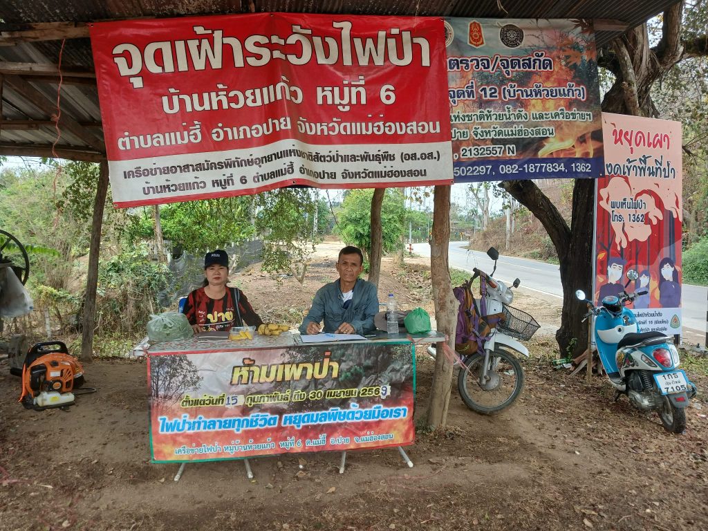 ผู้ใหญ่บ้านห้วยแก้ว หมู่ 6 ต.แม่ฮี้ อ.ปาย จ.แม่ฮ่องสอน นำลูกบ้านออกไปทำแนวกันไฟป่า ร่วมกับเจ้าหน้าที่ควบคุมไฟป่าห้วยน้ำดัง บริเวณสำนักสงฆ์พระธาตุศรีวิชัย ระยะทางยาว 1.5 กม.