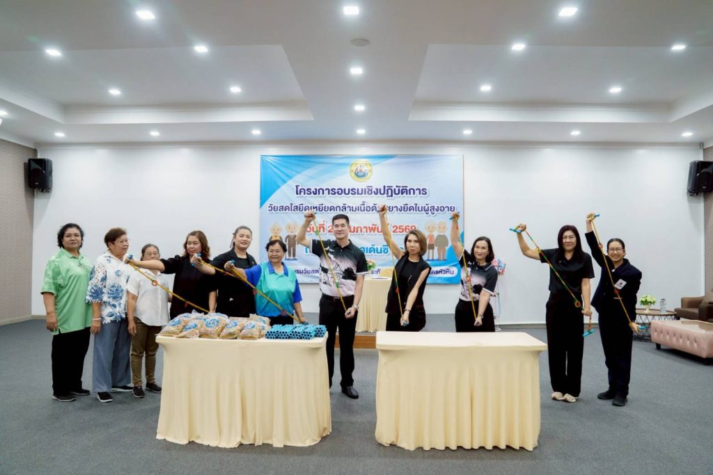 วันที่ 25 กุมภาพันธ์ 2569 เทศบาลนครหัวหินจัดโครงการอบรมเชิงปฏิบัติการ “วัยสดใส ยืดเหยียดกล้ามเนื้อด้วยยางยืดในผู้สูงอายุ” ณ Golden Sea Hotel Hua Hin โดยมี นายนพพร วุฒิกุล นายกเทศมนตรีนครหัวหิน เป็นประธานในพิธีเปิด พร้อมด้วยนางสาวบุษบา โชคสุชาติ รองนายกเทศมนตรีนครหัวหิน นางหนึ่งฤทัย สุขจันทร์ รองปลัดเทศบาลนครหัวหิน เจ้าหน้าที่จากกองสวัสดิการสังคม และผู้สูงอายุในพื้นที่เข้าร่วมกิจกรรมอย่างพร้อมเพรียง