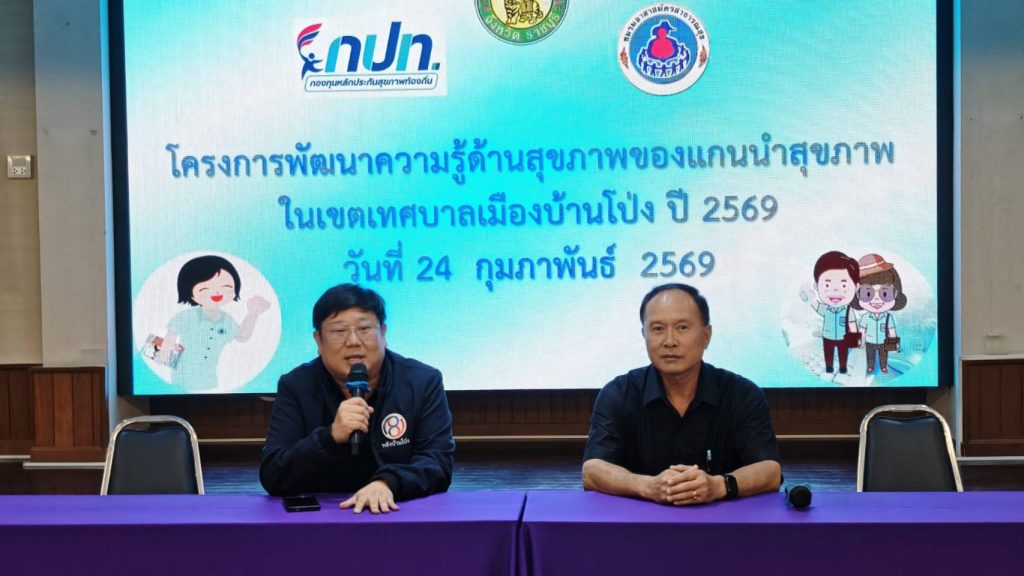 จ,ราชบุรี เมื่อวันที่ 24 ก,พ, 69 โดยนายกฤษฎา ประดิษฐ์กุลนายกเทศมนตรีเมืองบ้านโป่งพร้อมนายโอม อิทธิพลานุคุปต์ รองนายกเทศมนตรีเมืองบ้านโป่ง เป็นประธานเปิดโครงการพัฒนาความรู้ด้านสุขภาพของแกนนำสุขภาพผ่านการอบรมปฏิบัติการ การแลกเปลี่ยนเรียนรู้ในพื้นที่มีสุขภาพดีขึ้น โดยมีนายณรงค์ แสงดิษฐ์ รักษาการผู้อำนวยการกองสาธารณสุขและสิ่งแวดล้อม กล่าวรายงานวัตถุประสงค์ เพื่อเสริมสร้างความรู้ทักษะความสามารถในการปฏิบัติงานด้านสาธารณสุขแกนนำสู่ระดับแนวหน้า