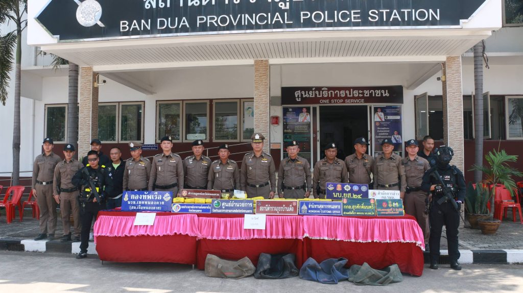 ตำรวจ สภ.บ้านเดื่อ ยึดยาไอซ์ 4 กระสอบ น้ำหนัก ประมาณ 123 กฺิโลกรัม ยาบ้า 5,800 เม็ด ซุกมาในรถเก๋ง ส่วนผู้ต้องหาหลบหนีไปได้