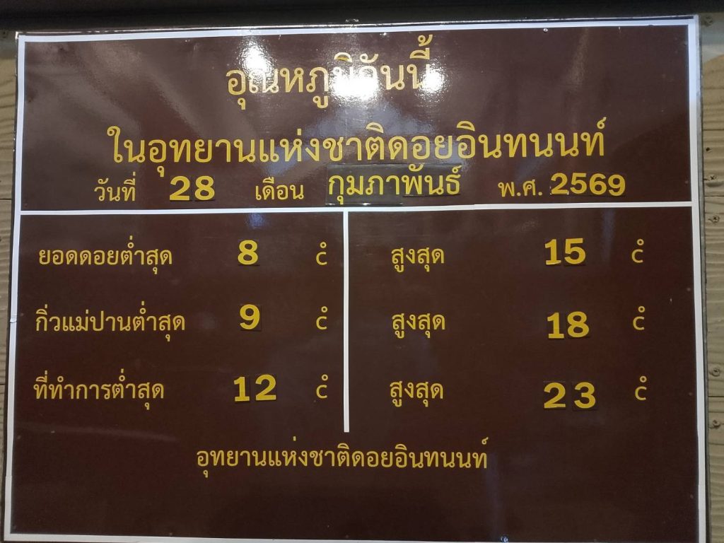เมื่อเวลา 09.00 น. วันที่ 28 กพ 69 ทางอุทยานแห่งชาติดอยอินทนนท์ อ จอมทองเชียงใหม่ โดย นายจีรนิติ เชิงสะอาด หัวหน้าอุทยานแห่งชาติดอยอินทนนท์ ได้รายงานว่า อากาศบนดอยอินทนนท์ ยังคงหนาวอยู่บรรยากาศ เช้าวันที่ 28 กุมภาพันธ์ 2569 เวลา 7.00 น. วันนี้ยอดดอยและกิ่วแม่ปานอากาศเปิดคุณภาพอากาศดีมาก นักท่องเที่ยวยังคงเดินทางมาสัมผัสอากาศหนาว ชมทะเลหมอก และเดินชมศึกษาธรรมชาติในเขตอุทยานแห่งชาติดอยอินทนนท์ ไม่ขาดสาย อุณหภูมิต่ำสุด ยอดดอย 8 c
