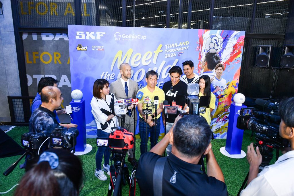 นายทวิวัชร์ เรืองปัญญาโรจน์ กรรมการผู้จัดการ บริษัท เอส เค เอฟ (ประเทศไทย) จำกัด ร่วมกับ มิสเตอร์ เพอร์ ลินเนอร์ ฑูตสัมพันธ์ทางการค้าสวีเดน ประจำประเทศไทย เป็นประธานแถลงข่าวการแข่งขันฟุตบอลเยาวชน “Meet the World Thailand Tournament – B14 2026” (มีท เดอะ เวิลด์ ไทยแลนด์ ทัวร์นาเมนต์ 2026) ที่ ร้านอาริ วัน แบงค็อก