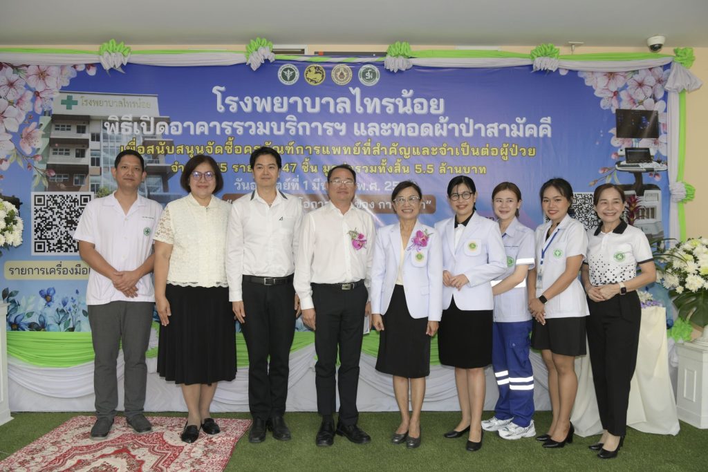 วันนี้ (1 มี.ค. 69) เวลา 09.00 น. ณ โรงพยาบาลไทรน้อย นายแพทย์สมฤกษ์ จึงสมาน ปลัดกระทรวงสาธารณสุข เป็นประธานฝ่ายฆราวาสในพิธีเปิดอาคารรวมบริการทางการแพทย์ และพิธีทอดผ้าป่าสามัคคีเพื่อสมทบทุนจัดซื้อเครื่องมือทางการแพทย์ โดยมี พระโสภณรัตนาภรณ์ เจ้าอาวาสวัดแก้วฟ้า ประธานที่ปรึกษาฝ่ายสงฆ์ พร้อมด้วย นายเชษฐา โมสิกรัตน์ ผู้ว่าราชการจังหวัดนนทบุรี นายอภิชัย อร่ามศรี รองผู้ว่าราชการจังหวัดนนทบุรี นางสาวสะอาด พิมพ์สมบูรณ์ นายอำเภอไทรน้อย แพทย์หญิงมาลี สิริสุนทรานนท์ ผู้อำนวยการโรงพยาบาลไทรน้อย ดร.ฉลวย ขันจำนงค์ อดีตนายกองค์การบริหารส่วนตำบลไทรใหญ่ และภาคีเครือข่ายภาคส่วนต่างๆ เข้าร่วมพิธี