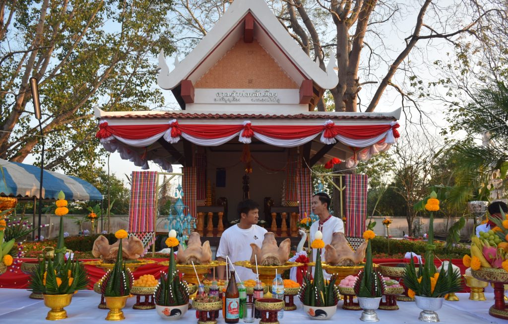 จากนั้น นายสุรศักดิ์ พ่อเมืองหนองบัวลำภู เป็นประธานในการประกอบพิธีสักการะศาลเมือง พร้อมพิธีบวงสรวงเครื่องสังเวยหน้าศาลหลักเมือง พร้อมหัวหน้าส่วนราชการ และพลังศรัทธา ร่วมในพิธีจนเสร็จสิ้นพิธีการ ภายหลังพิธีบวงสรวงเสร็จ ชาวบ้านแห่เข้าไปหยิบเอาสิ่งของที่ทุกคนอยากได้ไว้เพื่อความเป็นสิริมงคลได้แก่เครื่องบวงสรวงก่อนนำไปเป็นมงคลแก่ชีวิต เนื่องในโอกาสวันสำคัญของอำเภอศรีบุญรือง กันอย่างเนืองแน่น