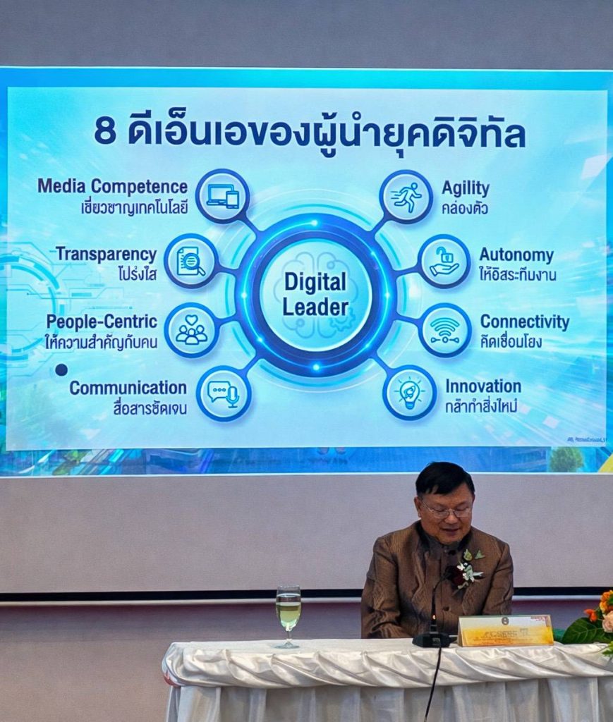 ดร.ณฐพล วิถี รองผู้ว่าราชการจังหวัดอุดรธานี บรรยายพิเศษในหัวข้อ ภาวะผู้นำการเปลี่ยนแปลงในยุคดิจิทัลซึ่งได้เน้นย้ำถึงความสำคัญของวิสัยทัศน์และการปรับตัวของผู้นำท่ามกลางความท้าทายจากเทคโนโลยีและเศรษฐกิจฐานความรู้ เพื่อนำพาองค์กรและชุมชนสู่ความสำเร็จอย่างยั่งยืน