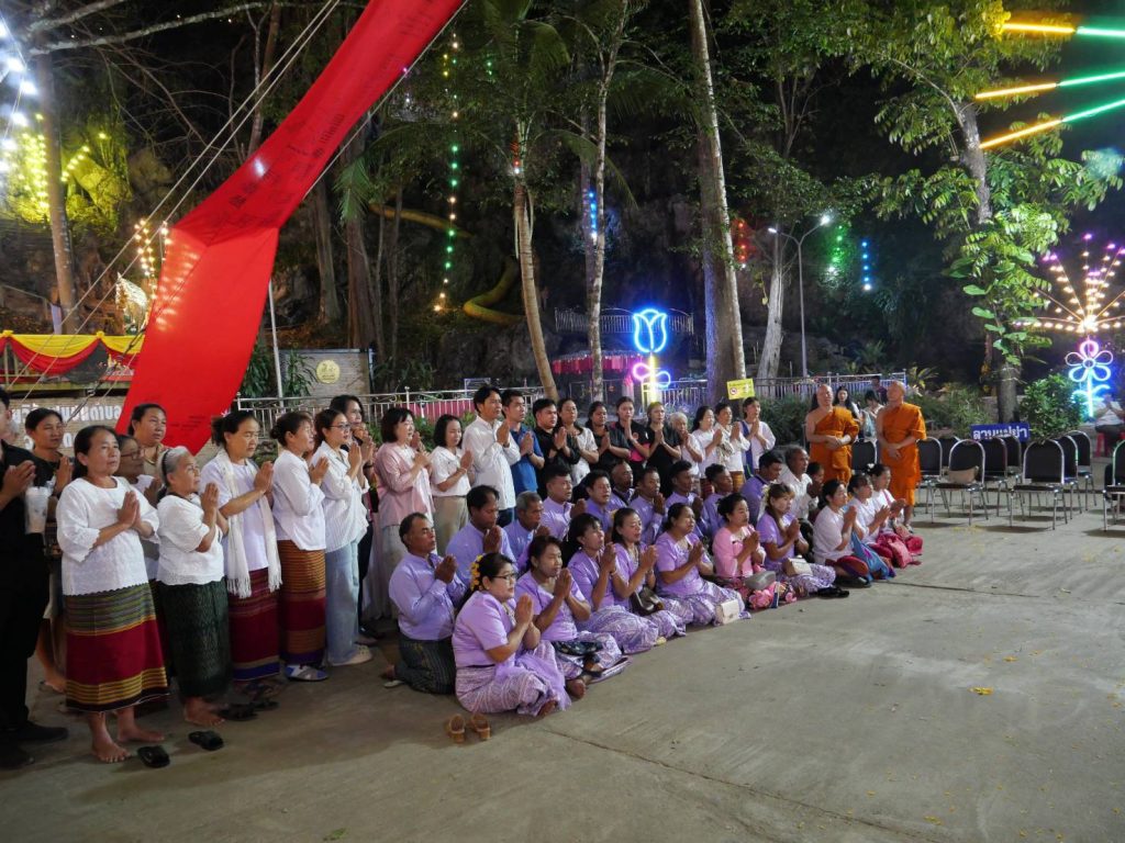 กาฯจนบุรี พุทธศาสนิกชนและศิษยานุศิษย์ร่วมพิธีอัญเชิญผ้าแดงขึ้นห่มองค์เจดีย์ชาย เพื่อบูชาพระบรมสาริกธาตุ วัดปรังกาสี อำเภอทองผาภูมิ จังหวัดกาญจนบุรี