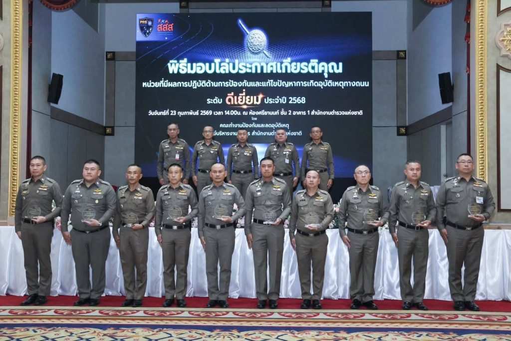 โดยสำนักงานตำรวจแห่งชาติ ได้มีการจัดพิธีมอบรางวัลประเภทดีเยี่ยมให้แก่หน่วยงานที่ผ่านการคัดเลือก โดยก่อนหน้านี้ได้มีการดำเนินการมอบรางวัลในประเภทดีเด่นให้แก่หน่วยงานที่ผ่านการคัดเลือกเสร็จสิ้นเรียบร้อยแล้ว สำหรับการมอบรางวัลในครั้งนี้ เป็นการมอบรางวัลประเภทดีเยี่ยมให้แก่หน่วยงาน 2 ระดับ ประกอบด้วย ระดับกองบังคับการ และระดับสถานีตำรวจ ซึ่งผ่านการคัดเลือกจากคณะกรรมการของแต่ละกองบัญชาการ โดยพิจารณาจากผลงานการปฏิบัติในปี 2568 และผ่านเกณฑ์การพิจารณารวมทั้งสิ้น 21 หน่วยงาน วัตถุประสงค์ของการมอบรางวัลเพื่อเป็นเกียรติประวัติ และสร้างขวัญกำลังใจให้แก่ข้าราชการตำรวจสายงานจราจรทุกนาย ที่มีความมุ่งมั่นตั้งใจในการปฏิบัติหน้าที่ เพื่อลดความสูญเสียบนท้องถนนอย่างเต็มกำลังความสามารถ โดยในพิธีการประธานมอบโล่รางวัลให้แก่ผู้แทนจากทั้ง 21 หน่วยงาน ณ ห้องศรียานนท์ ชั้น 2 อาคาร 1 สำนักงานตำรวจแห่งชาติ.///////// นิวัตร ธาตุอินจันทร์ เชียงใหม่