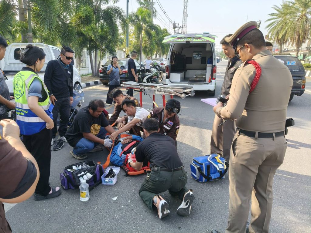 ผกก.สภ.สามพราน เข้าช่วยเหลือลุงขี่จยย.เกิดวูบ ชนท้าย รถกระบะ เจ็บสาหัส