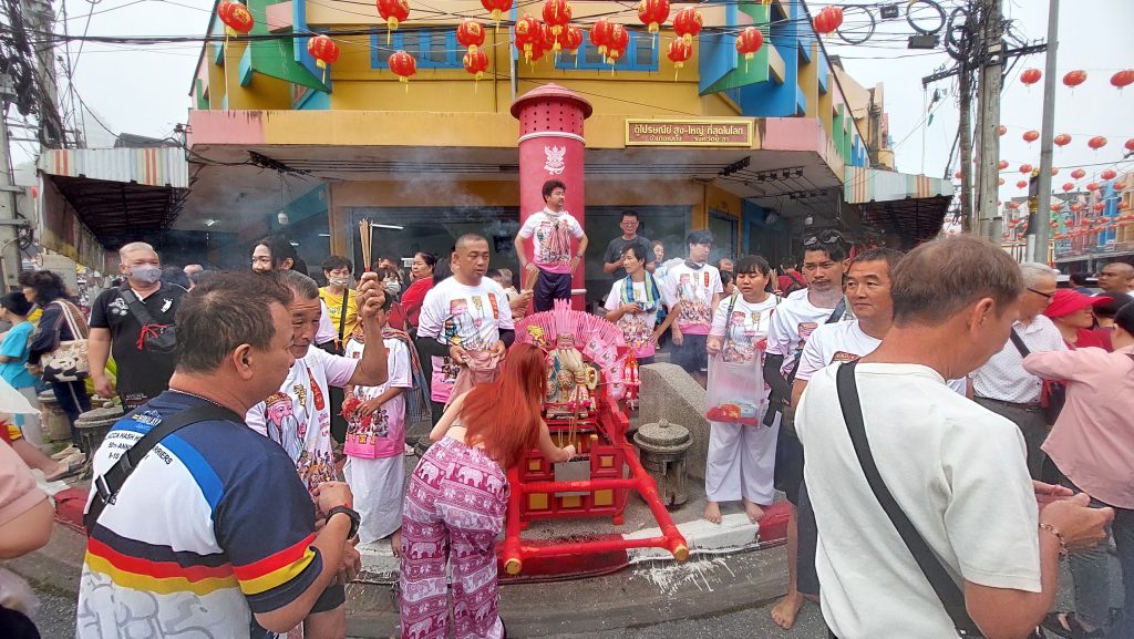 โดยขบวนองค์พระ สิงโต มังกร แห่ไปรอบเมืองเบตง เพื่อให้พี่น้องชาวไทยเชื้อสายจีนและนักท่องเที่ยวชาวมาเลเซียได้กราบไหว้บูชา เพื่อความเป็นสิริมงคลแก่ตนเองและครอบครัว ทำให้ทั้งเมืองเบตงบรรยากาศเป็นไปด้วยความคึกคักเป็นอย่างมาก ท่ามกลางเสียงประทัดดังกึกก้องไปทั่วเมือง ของบรรดาเหล่าม้าทรงทั้งชายหญิงกว่า 50 ชีวิต ต่างโชว์อภินิหาร ใช้มีด เหล็กแหลม ทิ่มแทงร่างกาย สร้างความหวาดเสียวให้ประชาชนและนักท่องเที่ยวที่รอชมอยู่ตามสองข้างทางเป็นอย่างมาก