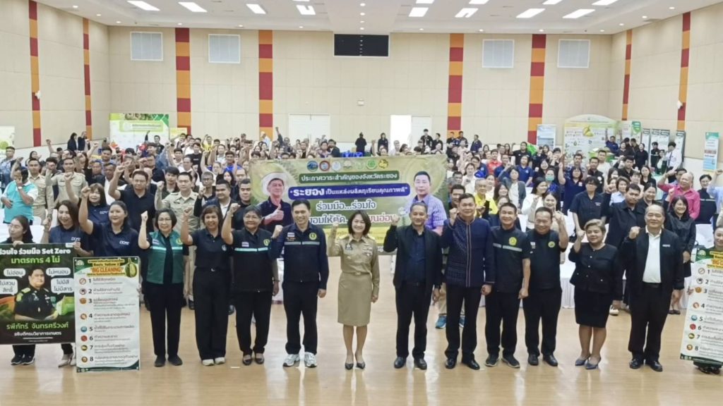 เมื่อเวลา 11.00 น. วันที่ 9 มี.ค.69 ที่โรงเรียนนานาชาติตากสินแกลง อ.แกลง จ.ระยอง น.ส.สลารีวรรณ ทัพทวี รองผู้ว่าราชการจังหวัดระยอง เป็นประธานในการประกาศจุดยืน Kick off วาระสำคัญของจังหวัด รณรงค์ประชาสัมพันธ์ สร้าง-ปลุกจิตสำนึก ทุเรียนระยองทุเรียนคุณภาพดี และมาตรการควบคุมทุเรียนเพื่อการส่งออก โดยมีนายปิยะ ปิตุเตชะ นายก อบจ.ระยอง นายประสานต์ พฤกษาชาติ รองนายก อบจ.ระยอง น.ส.สมหมาย พลมณี เกษตรจังหวัดระยอง นายนพดล แดงพวง ผอ. ศูนย์วิจัยและพัฒนาการเกษตรระยอง นายธนโชค พงษ์ชวลิต เกษตรและสหกรณ์จังหวัดระยอง นางเอกอนงค์ บัวมาศ พาณิชย์จังหวัดระยอง ร่วมประกาศจุดยืน และมีเกษตรกรชาวสวนทุเรียน ผู้ประกอบการโรงคัดบรรจุทุเรียนเพื่อการส่งออก หัวหน้าส่วนราชการที่เกี่ยวข้อง ผู้บริหาร อปท. กำนัน ผู้นำท้องถิ่น จำนวน 300 คน เข้าเป็นสักขีพยานฯ และภายในงานยังมีพิธีมอบป้ายประชาสัมพันธ์โครงการฯ จำนวน 300 ป้ายให้ผู้แทนอำเภอ 8 อำเภอ และมอบป้ายมาตรการ Big Cleaning 8 ข้อ และมาตรการ 4 ไม่ แก่ผู้ประกอบการ