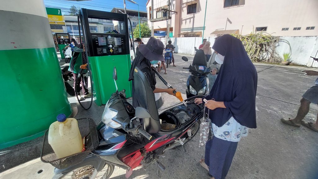 ส่วนด้านสถานการณ์น้ำมันในพื้นที่ อ.เบตง จ.ยะลา นางจันทิมา กองวัฒนศิลป์ ผู้จัดการปั้ม ปตท.เบตง เปิดเผยว่า ในขณะนี้ เวลาสั่งน้ำมันไปจะได้มาประมาณ 15,000 – 18,000 ลิตรต่อคัน โดยทางคลังส่วนกลางเป็นคนจัดสรรให้แต่ละปั้มว่าจะได้จำนวนกี่ลิตร โดยมีการกำหนด ดีเซล 6,000 ลิตร แก๊สโซฮอร์ 6,000 ลิตร ซึ่งในขณะการจัดสรรน้ำมันไม่ใช่จากคลังน้ำมันสงขลาแล้ว แต่เป็นการจัดสรรจากคลังส่วนกลางให้แต่ละปั้ม โดยล่าสุด ปั้ม ปตท.เบตง ได้น้ำมันมา 18,000 ลิตร ซึ่งทางปั้มได้มีมาตราการในการเติมน้ำมันโดยให้เติมน้ำมันทุกชนิดได้คันละ1,000 บาท รวมทั้งรถทั้งแกลลอนเพื่อให้ทั่วถึง