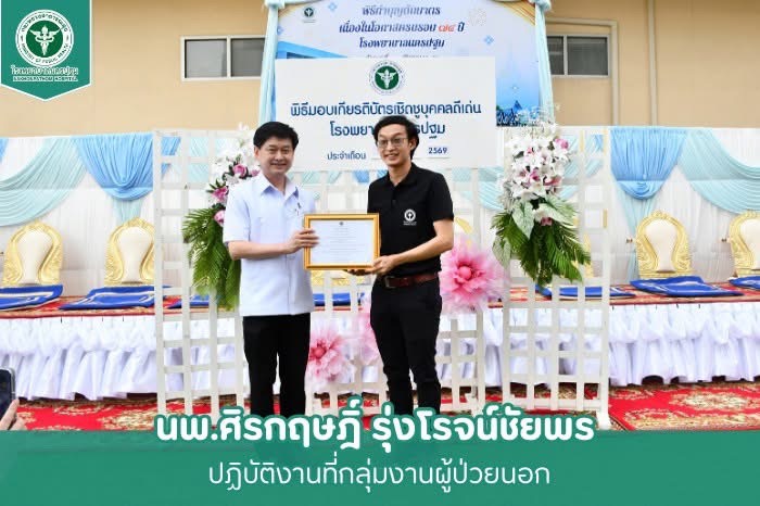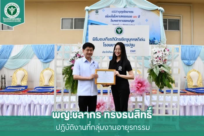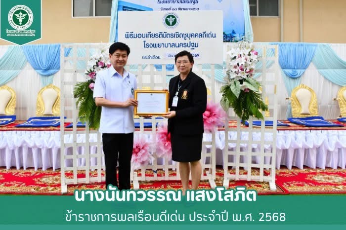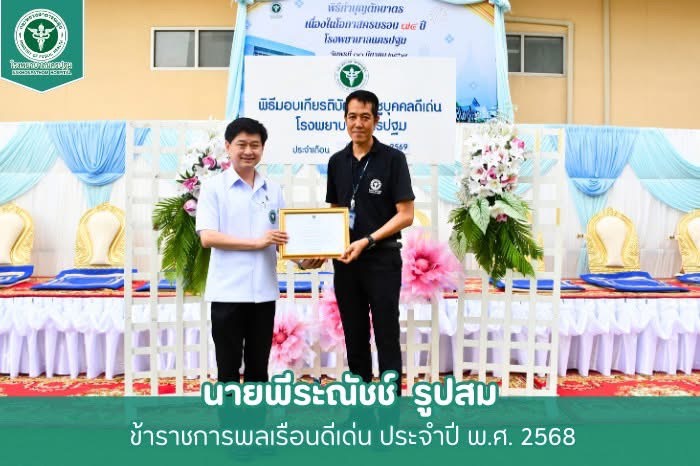 พิธีมอบเกียรติบัตรเชิดชูเกียรติข้าราชการพลเรือนดีเด่น และผู้กระทำความดี ณ ลานคุณธรรม โรงพยาบาลนครปฐม