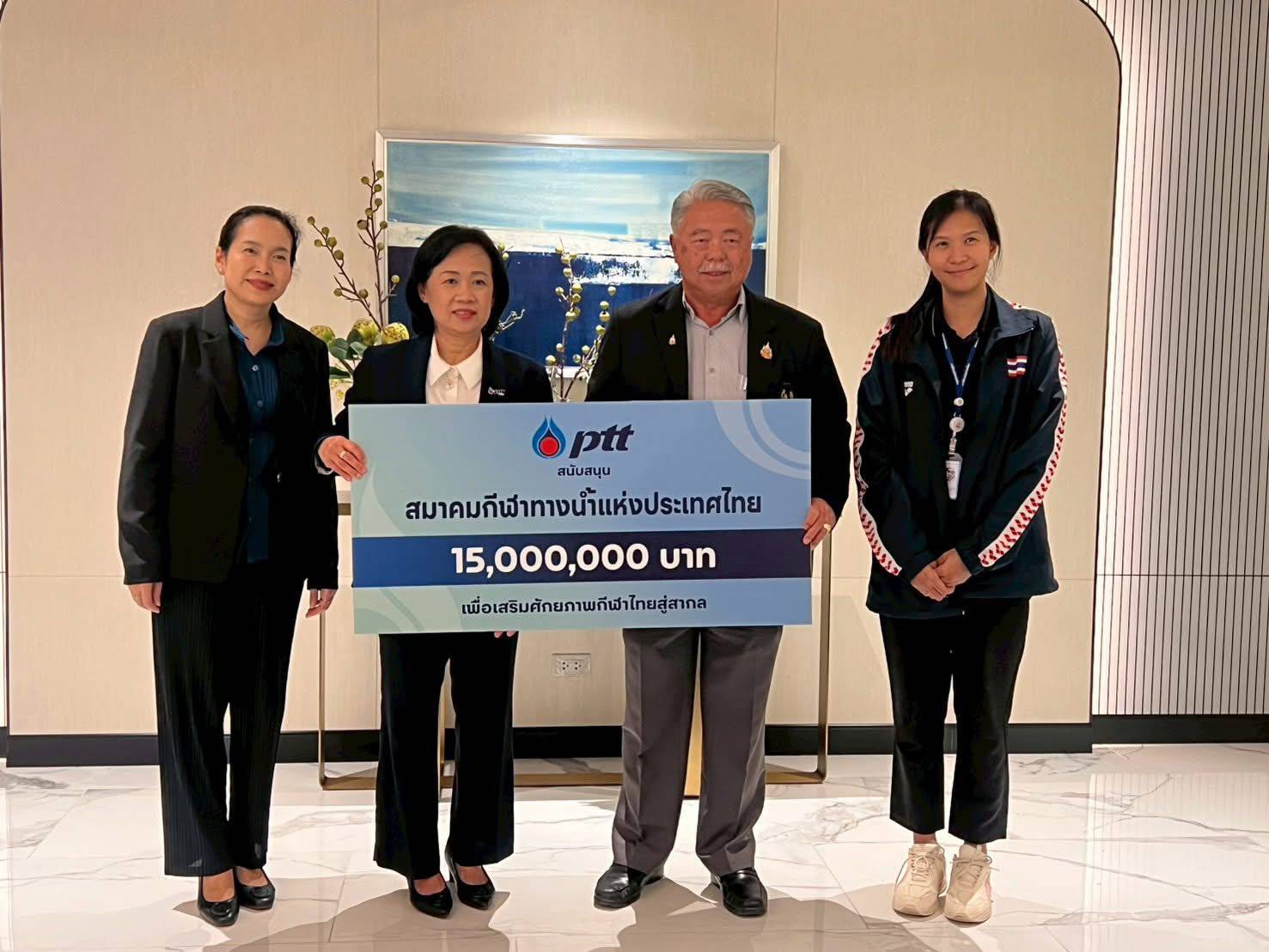 สมาคมกีฬาทางน้ำแห่งประเทศไทย ปลื้ม ปตท สนับสนุนสมาคม 15 ล้านบาท เพื่อใช้ในกิจกรรมต่างๆ ของสมาคมฯ ปูทางพัฒนานักกีฬาสู่ความสำเร็จ