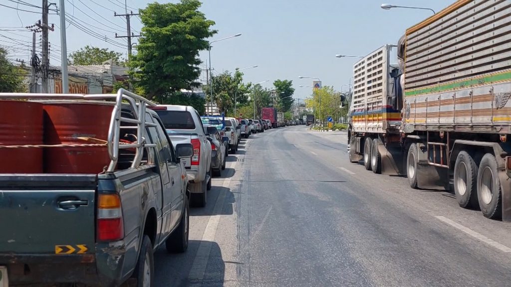 ปั๊มน้ำมันลพบุรีดีเซลหมดกระทบเกษตรนอนรอข้ามคืน