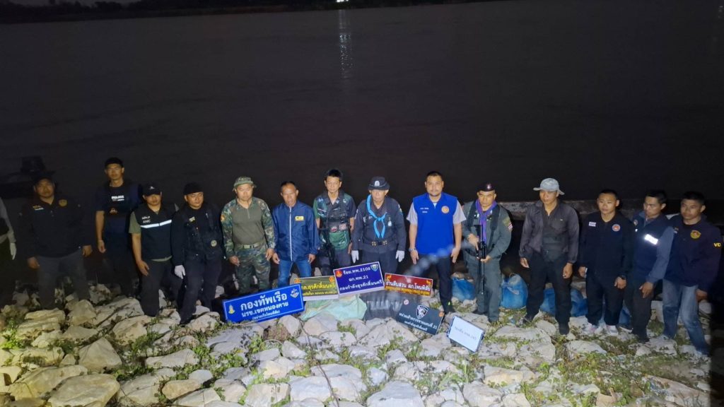 กระทั่งเวลา 04.40 น. ของวันที่ 16 มี.ค. 2569 เจ้าหน้าที่ นฝด.21 ตรวจพบเรือต้องสงสัย โดยมีบุคคลอยู่ในเรือจำนวน 2 คน พายเรือข้ามจากฝั่ง สปป.ลาว มายังฝั่งประเทศไทย และเข้าจอดบริเวณริมฝั่งแม่น้ำโขง บ้านถิ่นดุง ต.วัดหลวง จากนั้นได้มีกลุ่มบุคคลต้องสงสัยเดินมารับกระสอบต้องสงสัยจากในเรือและนำขึ้นมาวางไว้ริมฝั่งแม่น้ำโขง