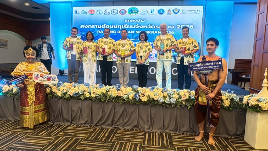 เมื่อวันที่ 16 มี.ค.69 เวลา 15.30น.ที่ห้องประชุมโรงแรมสตาร์ คอนเวนชั่น เซ็นเตอร์ระยอง จ.ระยอง นายไตรภพ วงศ์ไตรรัตน์ ผู้ว่าราชการจังหวัดระยอง เป็นประธานในพิธีแถลงข่าวการจัด งานเทศกาลสงกรานต์สุดยิ่งใหญ่ “สงกรานต์ถนนทุเรียน จังหวัดระยอง 2026 ครั้งที่ 2 (Rayong Durian Songkran 2026 #2)” ระหว่างวันที่ 13-14 เม.ย.69 นี้ ตั้งแต่เวลา 15.00-24.00 น. บริเวณถนนทุเรียน สตาร์สาย 4 ศูนย์การค้าาระยอง อ.เมืองระยอง ซึ่งจัดขึ้นเป็นปีที่2