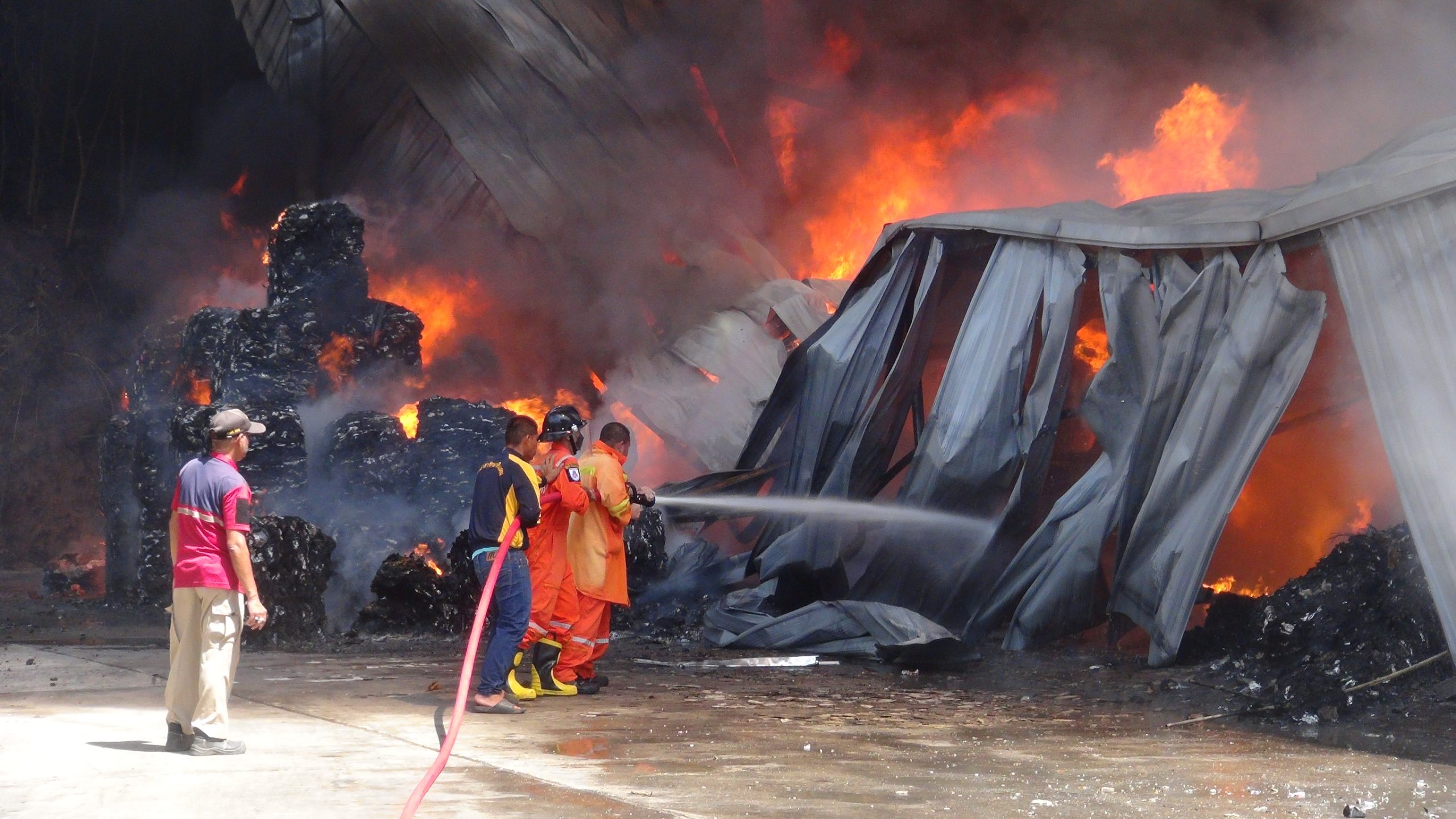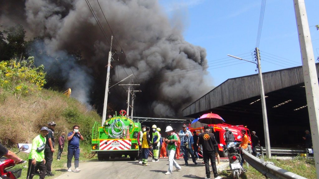 ยะลา – เพลิงไหม้โรงงานขยะรีไซเคิลของเทศบาลเมืองเบตง ไฟลุกแรงควันพวยพุ่ง ระทึกอยู่ใกล้สวนทุเรียนและสวนยางพาราชาวบ้าน เจ้าหน้าที่ดับเพลิงกำลังเร่งฉีดน้ำสกัดเพลิงไม่ให้ลุกลาม