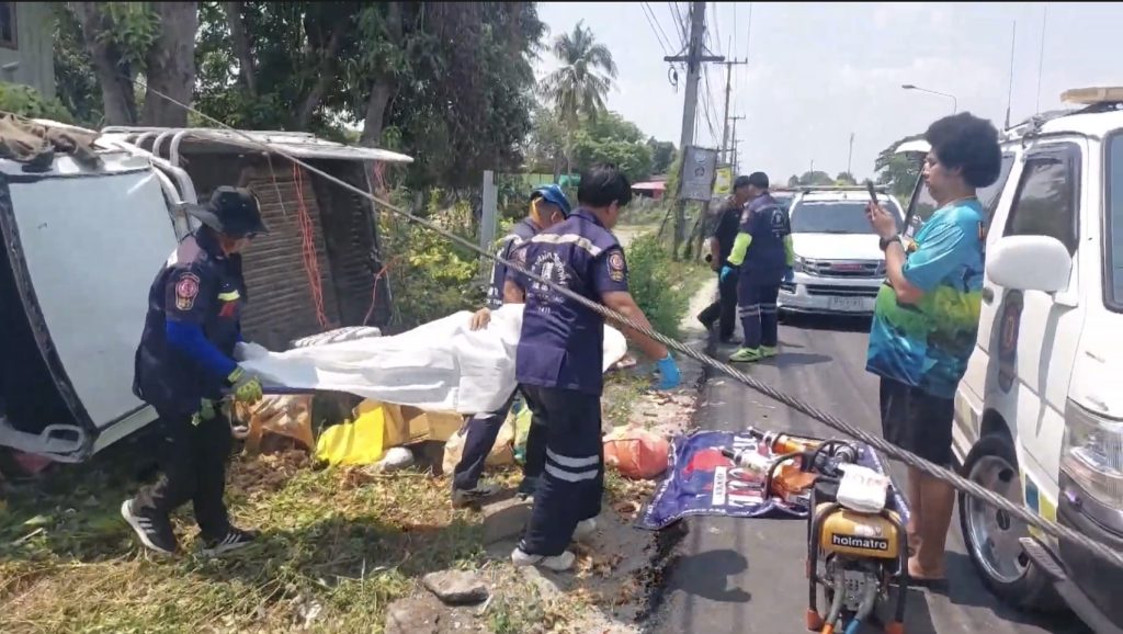 ลูกชายขับรถกระบะจากชุมพร พาแม่ไปโอนที่ดินชัยภูมิ จู่ๆรถเสียหลักชนเสาไฟแรงสูงพลิกคว่ำแม่ดับอนาถ ทั้งที่ในมือยังกอดโฉนดที่ดินแนบอก