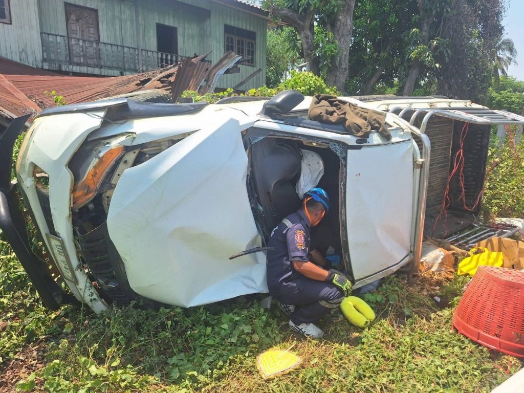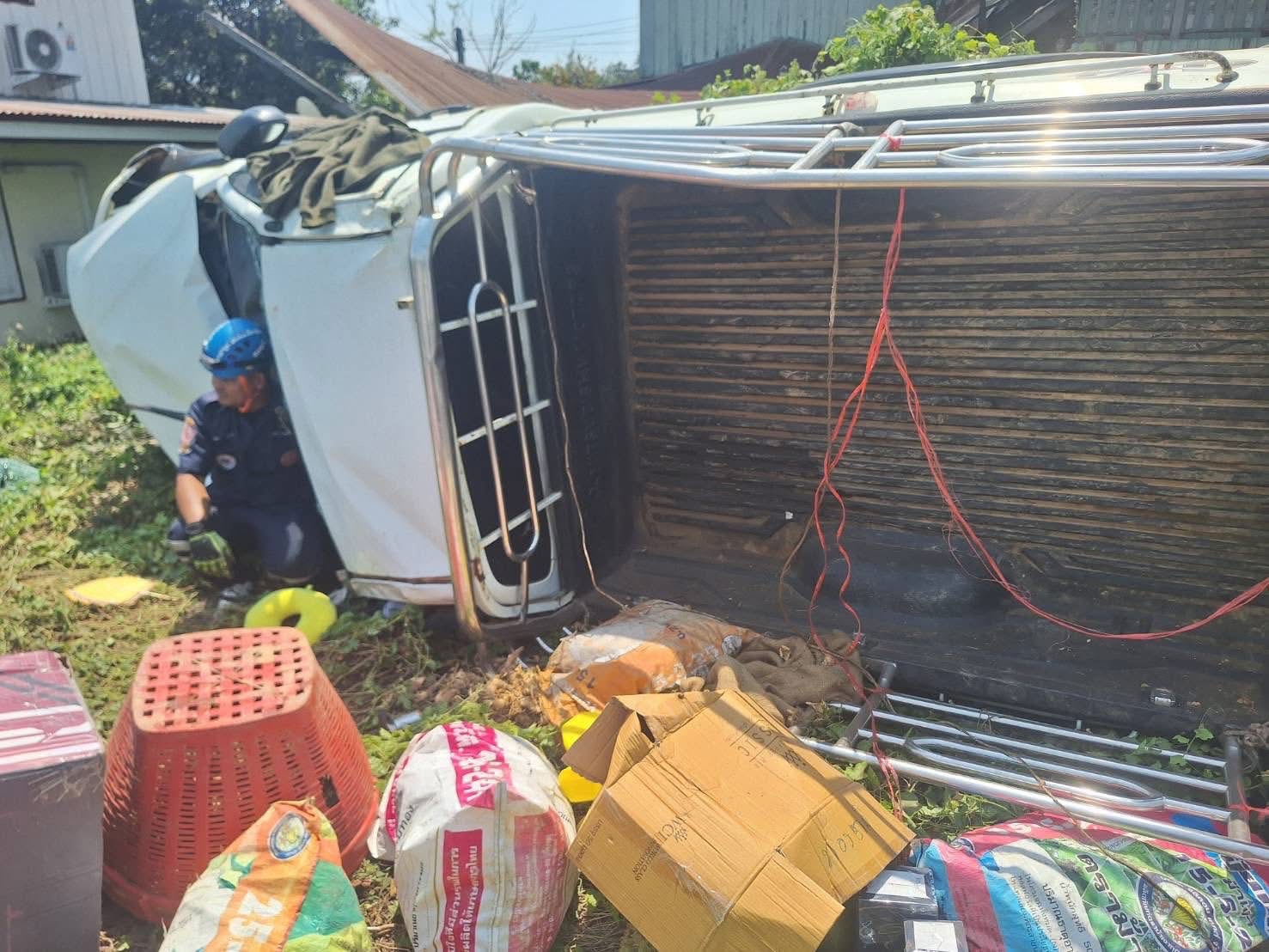 ลูกชายขับรถกระบะจากชุมพร พาแม่ไปโอนที่ดินชัยภูมิ จู่ๆรถเสียหลักชนเสาไฟแรงสูงพลิกคว่ำแม่ดับอนาถ