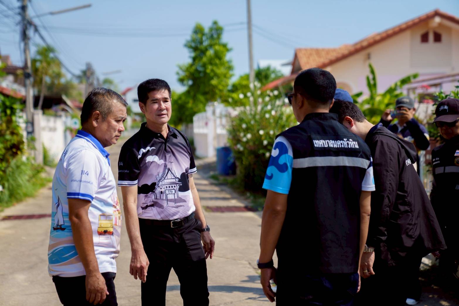 นายนพพร วุฒิกุล นายกเทศมนตรีนครหัวหิน พร้อมด้วย นายสรรภพ อึ้งรัศมี รองนายกเทศมนตรีนครหัวหิน นางสาวณัฐธวรรณ มิตรดี เลขานุการนายกเทศมนตรีนครหัวหิน พร้อมด้วย นายชีพ สุกสี ประธานสภาเทศบาลนครหัวหิน และสมาชิกสภาฯร่วมกับ นายกลยุทธ กุยุคำ ผู้อำนวยการสำนักช่าง และเจ้าหน้าที่ ที่เกี่ยวข้อง ลงพื้นที่ตรวจสอบสภาพถนนภายในซอยหัวหิน 33 เพื่อเตรียมดำเนินการปรับปรุงซ่อมแซมพื้นผิวจราจร ให้มีความมั่นคง แข็งแรง และปลอดภัยต่อการสัญจรของประชาชน