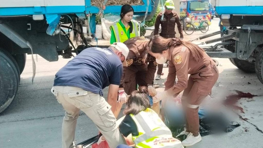 นครปฐม หนุ่ม ใหญ่วัย 47 ปีซิ่งรถ จยย. ชนรถ 18 ล้อดับคาที่ในตัวพบหลักฐานบัตรผู้พิการประเภทหนึ่ง