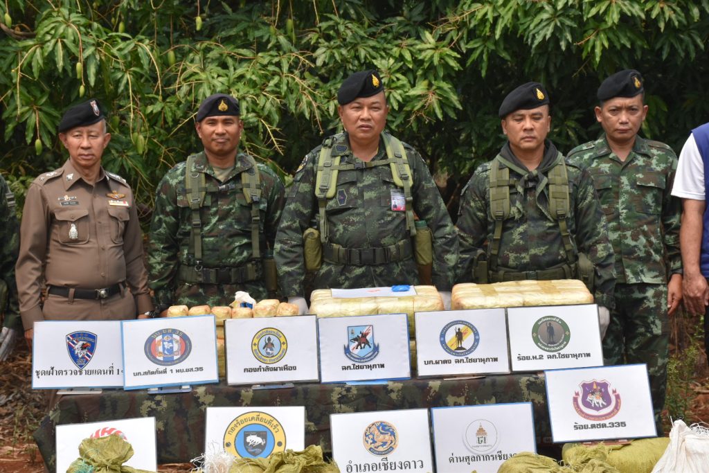 และเมื่อเวลา 14.00 นาฬิกา พลตรี สาธิต ไวยนนท์ ผู้บัญชาการกองกำลังผาเมือง/ผู้อำนวยการศูนย์ปฏิบัติการป้องกันและปราบปรามยาเสพติดกองกำลังผาเมือง ร่วมกับหน่วยงานที่เกี่ยวข้องลงพื้นที่เพื่อแถลงข่าวการตรวจยึดยาเสพติดจำนวนดังกล่าว หลังจากนั้นจึงได้นำของกลางทั้งหมดส่งให้กับสถานีตำรวจภูธรเชียงดาว เพื่อดำเนินการตามกฎหมาย.//////// นิวัตร ธาตุอินจันทร์ เชียงใหม่