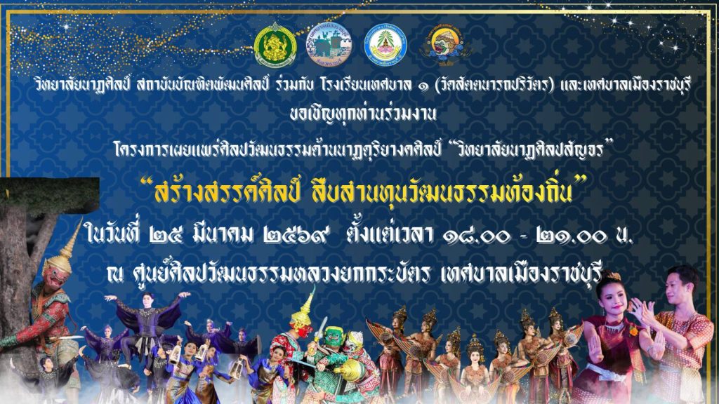 นายศักดิ์ชัย พิศาลผล นายกเทศมนตรีเมืองราชบุรี กล่าวว่า ตามที่วิทยาลัยนาฏศิลป สถาบันบัณฑิตพัฒนศิลป์ ร่วมกับจังหวัดราชบุรึ เทศบาลเมืองราชบุรี โดยโรงเรียนเทศบาล ๑ (วัดสัตตนารถปริวัตร) ได้เชิญชวนประชาชนมาร่วมเติมเต็มความสุขและร่วมสืบสานงานศิลป์ไปด้วยกันในโครงการ “วิทยาลัยนาฏศิลปสัญจร” ภายใต้คอนเซปต์สุดพิเศษ “สร้างสรรค์ศิลป์ สืบสานทุนวัฒนธรรมท้องถิ่น” ตระการตากับการแสดงศิลปวัฒนธรรมด้านนาฏดุริยางคศิลป์ที่หาชมได้ยาก พร้อมชมความงดงามของท่วงท่าและการร่ายรำจากเหล่านักแสดงมากฝีมือที่จะทำให้คุณหลงรักในความเป็นไทย ในวันพุธที่ 25 มีนาคม 2569 ตั้งแต่เวลา 18.00 – 21.00 น. ณ ศูนย์ศิลปวัฒนธรรมหลวงยกกระบัตรเมืองราชบุรี (เทศบาลเมืองราชบุรี) ชมฟรีตลอดงานขอเชิญทุกท่านมาร่วมเป็นส่วนหนึ่งในการอนุรักษ์และส่งเสริมศิลปะท้องถิ่นให้คงอยู่สืบไป