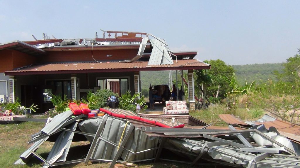 มุกดาหาร พายุฤดูร้อนพัดถล่ม บ้านเรือนราษฎรพังเสียหาย กว่า 20 หลังคาเรือน