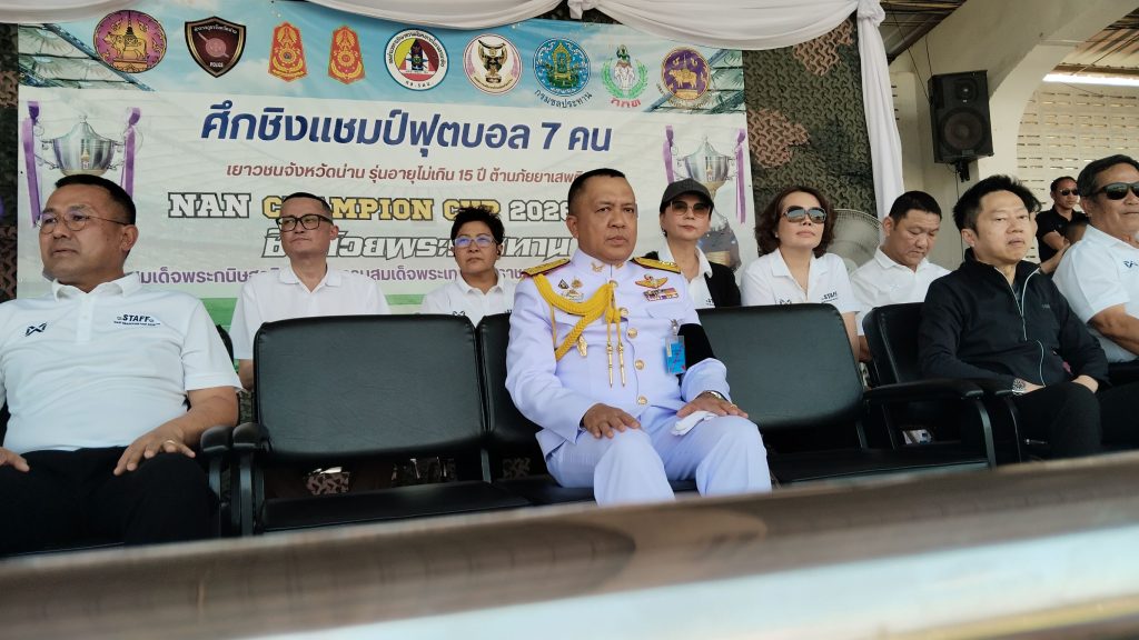 วันที่ 22 มีนาคม 2569 เวลา 16.00 น. พลตรีบุญญฤทธิ์ เกษตรเวทิน ผู้บัญชาการมณฑลทหารบกที่ 38 เป็นประธานในพิธีปิดการแข่งขันฟุตบอลศึกชิงแชมป์ฟุตบอล 7 คน เยาวชนจังหวัดน่าน รุ่นอายุไม่เกิน 15 ปี ต้านภัยยาเสพติด “NAN CHAMPION CUP 2026” ครั้งที่ 1 ชิงถ้วยพระราชทาน โดยมี พันเอกทศพล ผ่องศรีสุข รองผู้อำนวยการรักษาความมั่นคงภายในจังหวัดน่าน พร้อมด้วยหัวหน้าส่วนราชการ ภาคเอกชน และเยาวชนเข้าร่วมอย่างคับคั่ง ณ สนามกีฬาองค์การบริหารส่วนจังหวัดน่าน ตำบลผาสิงห์ อำเภอเมืองน่าน จังหวัดน่าน