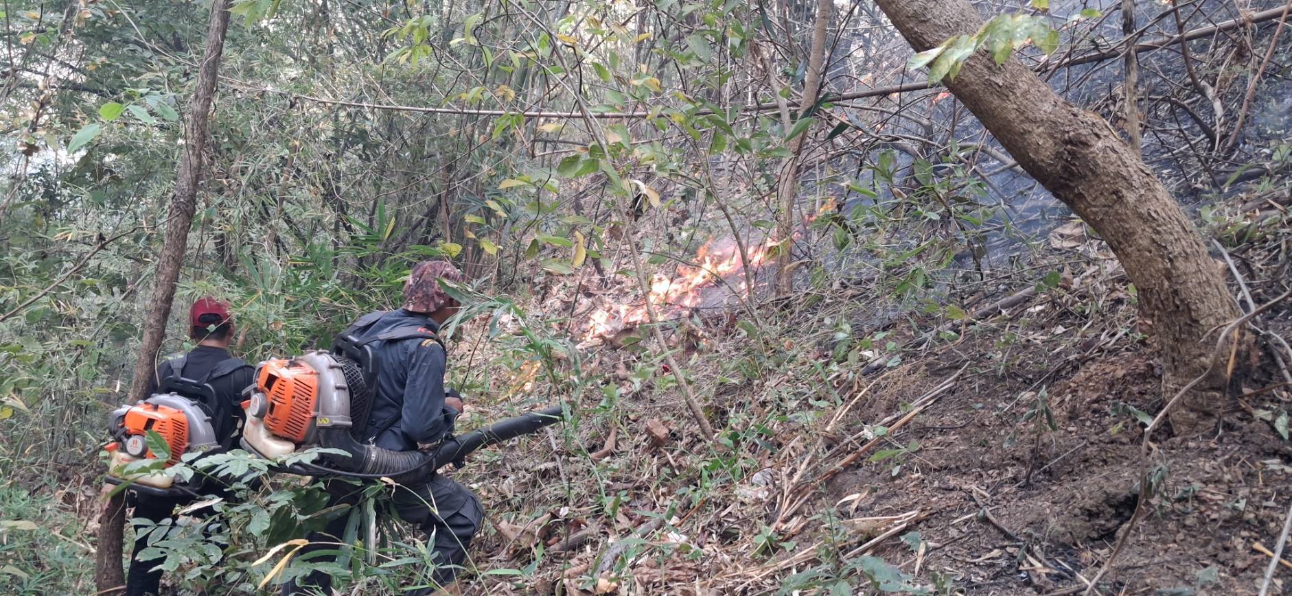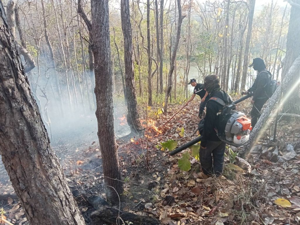 ในส่วนของท้องที่บ้านรักไทย แหล่งท่องเที่ยวชื่อดัง หมู่ที่ ๖ ตำบลหมอกจำแป่ อำเภอเมือง จังหวัดแม่ฮ่องสอน เจ้าหน้าที่หน่วยป้องกันและพัฒนาป่าไม้เมืองแม่ฮ่องสอน / หน่วยป้องกันรักษาป่าที่ มส ๒ (เมืองแม่ฮ่องสอน) ลงพื้นที่ร่วมกับผู้ใหญ่บ้านและประชาชนในพื้นที่บ้านรักไทย เข้าดำเนินการควบคุมและดับไฟได้แล้ว ทั้งนี้ เจ้าหน้าที่และชาวบ้านได้ร่วมกันจัดทำแนวกันไฟเพื่อป้องกันการลุกลามไปยังพื้นที่โดยรอบ เบื้องต้นพบว่ามีพื้นที่ป่าได้รับความเสียหายจากไฟไหม้ประมาณ ๑๐ ไร่