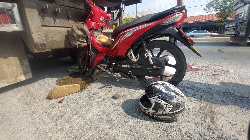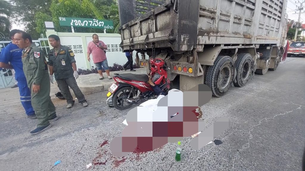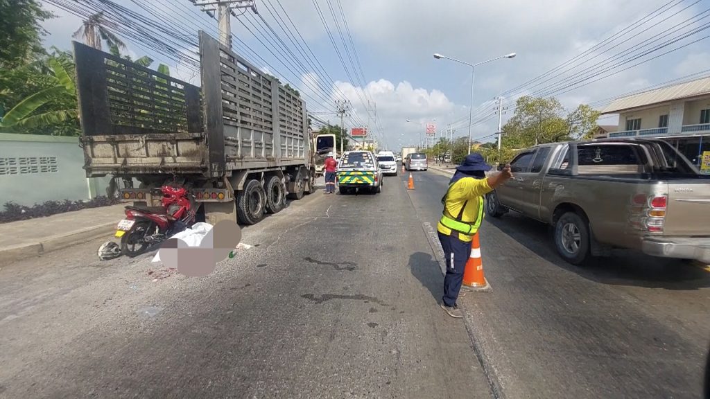 2 หมุ่มซิ่งรถ จยย.เสยท้ายรถบรรทุกคนขับดับคาที่