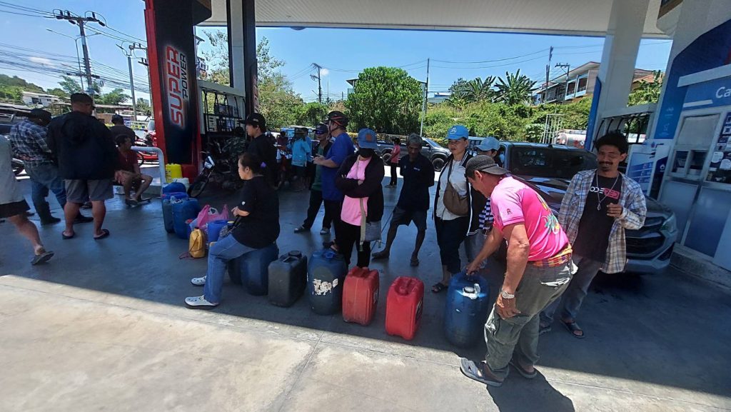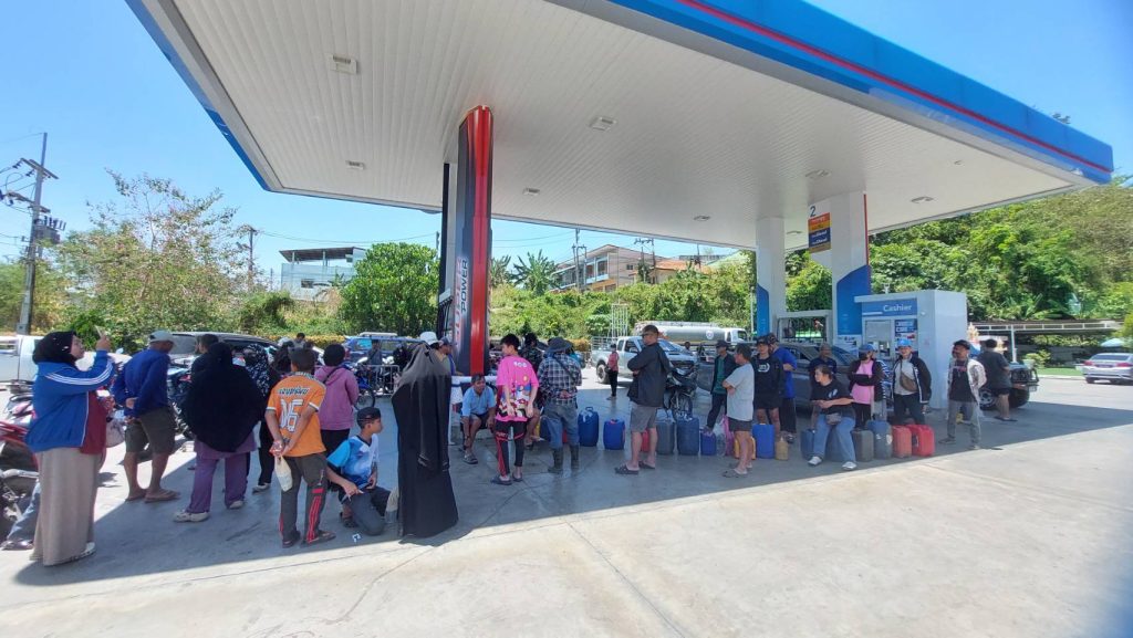 เมื่อเวลา 12.00 น. ของวันที่ 24 มีนาคม 2569 บรรยากาศที่ปั๊ม ปตท.เบตง ริมถนนสุขยางค์ ฝั่งขาออก อ.เบตง จ.ยะลา โดยราคาน้ำมันวันนี้ เบนซินอยู่ที่ 44.18 บาทต่อลิตร แก๊สโซฮอล์ 95 อยู่ที่ 35.59 บาทต่อลิตร ดีเซล อยู่ที่ 33.48 บาทต่อลิตร พรีเมียมดีเซล ปรับขึ้น 2 บาท อยู่ที่ 47.18 บาท โดยมีประชาชนต่างนำรถยนต์มาจอดต่อคิวยาวริมถนน เพื่อรอเติมน้ำมัน คิวยาวกว่า 1 กิโลเมตร หลังเปิดจำหน่ายในเวลา 12.00 น. จนถึง 18.00 น.โดยจำหน่ายน้ำมันบางคนยังไม่รู้ว่าจะได้เติมเวลาไหนแต่ต้องมาจอดรอเข้าคิวไว้ก่อนเพราะหาที่เติมยากในพื้นที่ สำหรับรถยนต์ สามารถเติมได้คันละ 700 บาท ทั้งดีเซล ทั้งเบนซิน หรือให้เลือกจะใส่รถยนต์หรือแกลลอนที่เดือดร้อนสุดคือ บรรดาเกษตรกร ต่างเดินหิ้วแกลลอน น้ำมันขนาด 20 ลิตร มายืนต่อคิวยาวยาวเป็นจำนวนมาก เพื่อรอเติมน้ำมัน ขณะทางปั๊มให้บริการในจำนวนจำกัดคนละ ไม่เกิน 700 บาท โดยทางปั๊มให้เลือกเติมจะใส่รถยนต์หรือแกลลอน ส่วนน้ำมันที่มาจากคลังสงขลาในช่วงเช้าวันนี้มาจำนวน 18,000ลิตร ซึ่งก็ไม่เพียงพอยังคงเกิดปัญหาขาดแคลนหนัก เนื่องจากพื้นที่ อ.เบตง ช่วงนี้เกษตรกรส่วนใหญ่ นำไปเติมเครื่องจักรการเกษตร เครื่องสูบน้ำ รวมถึงใช้เติมรถยนต์ที่ใช้ในสวน รถโดยสาร รถยนต์เทศบาลเมืองเบตง บางคันเข้าคิวรอนานกว่า 2-3 ชั่วโมง คาดว่าวันนี้คงมีประชาชนมาใช้บริการต่อคิวเติมน้ำมันเป็นจำนวนมากจนกว่าน้ำมันจะหมดปั๊ม