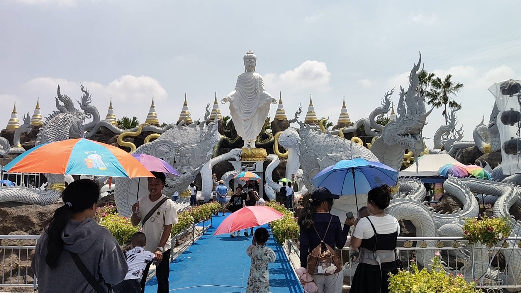 ผู้สื่อข่าวรายงานว่าที่ลานอุทยานธรรมพญานาคพระปรางเปิดโลก วัดดอนใหญ่ คลองแปด ต.ลำลูกกา อ.ลำลูกกา จ.ปทุมธานี ได้มีนักท่องเที่ยวที่ศรัทธาพญานาคจากทั่วสารทิศแห่กันเดินทางมากราบไหว้ขอพรพ่อปู่ศรีสุทธโธ แม่ย่าปทุมมา และเหล่าองค์พญานาคในลานอุทยานฯกันอย่างต่อเนื่องโดยจุดเด่นที่ได้รับความสำคัญนอกจากมาขอพรกันแล้วยังร่วมกันถ่ายเชลฟี่กับพญานาคน้อยที่โด่งดังในขณะนี้แล้วยังมีอีกหลายจุดที่ผู้เดินทางมาต่างสนใจถ่ายเก็บไว้เป็นที่ระลึกกันอีกด้วย