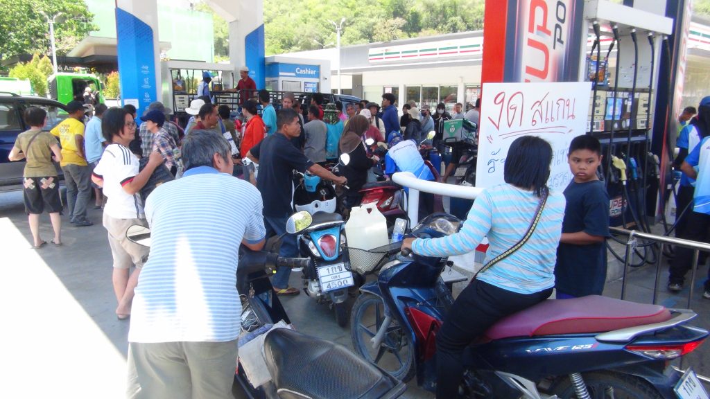 ก่อนหน้านี้ สถานีบริการน้ำมันได้งดจำหน่ายน้ำมันใส่แกลลอน ส่งผลกระทบต่อภาคการเกษตรในพื้นที่ เนื่องจากฤดูเก็บเกี่ยวและเพาะปลูกชะงักลง เครื่องจักรกลทางการเกษตร ไม่สามารถขับไปจอดเทียบหัวจ่ายหน้าปั๊มน้ำมันได้ และไม่สามารถนำแกลลอนไปซื้อน้ำมันมาสำรองใช้ในพื้นที่แปลงเกษตร ส่งผลให้ผลผลิตที่ถึงเวลาเก็บเกี่ยว ได้รับความเสียหายหรือพลาดช่วงเวลาเพาะปลูกที่เหมาะสม นอกจากนี้ หลายพื้นที่ต้องการน้ำเพื่อหล่อเลี้ยงพืชผล เครื่องสูบน้ำ หากไม่มีน้ำมันเชื้อเพลิงมาปั่นเครื่องสูบน้ำ พืชสวนจะยืนต้นตาย อาจสร้างความเสียหายต่อรอบการผลิตที่ลงทุนไป