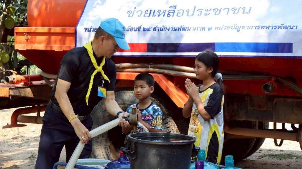 วันที่ 25 มี.ค.69 กองบัญชาการกองทัพไทย โดย ผู้บังคับหน่วยพัฒนาการเคลื่อนที่ 25 สำนักงานพัฒนาภาค 2 หน่วยบัญชาการทหารพัฒนา จิตอาสาพระราชทาน 904 นำกำลังพลชุดบรรเทาสาธารณภัยเคลื่อนที่เร็ว จำนวน 6 นาย พร้อมรถยนต์บรรทุกน้ำ ขนาด 6,000 ลิตร ออกให้ความช่วยเหลือแจกจ่ายน้ำอุปโภคบริโภค ให้กับประชาชนในพื้นที่บ้านไทยเจริญ หมู่ที่ 4 ตำบลพระพุทธบาท เพื่อบรรเทาความเดือดร้อนของพี่น้องประชาชนที่ประสบปัญหาขาดแคลนน้ำอุปโภคบริโภคในช่วงฤดูแล้ง เนื่องจากอยู่นอกเขตบริการประปาของชุมชน และแหล่งน้ำผิวดินที่ใกล้เคียงลดปริมาณลงอย่างต่อเนื่อง โดยลงพื้นที่ร่วมกับผู้นำชุมชนให้ความช่วยเหลือประชาชนอย่างเร่งด่วน