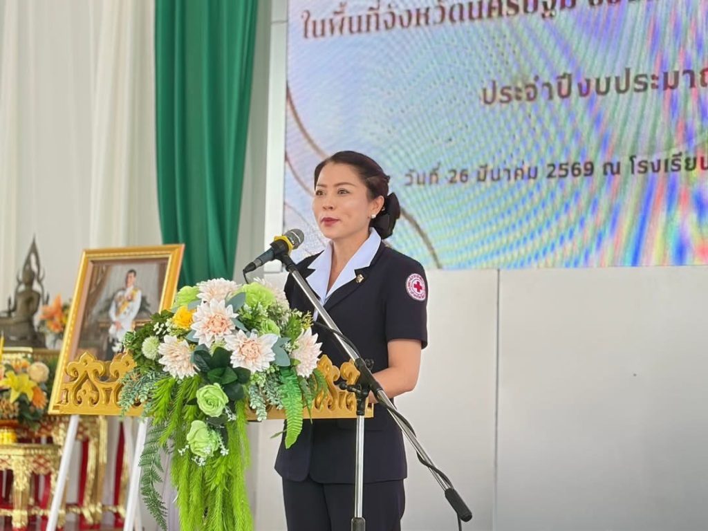 วันพฤหัสบดีที่ 26 มีนาคม พ.ศ. 2569 เวลา 09.30 น. นางสาวอโรชา นันทมนตรี ผู้ว่าราชการจังหวัดนครปฐม/นายกเหล่ากาชาดจังหวัดนครปฐม มอบหมายให้ นางศิริลักษณ์ พึ่งเนียม รองนายกเหล่ากาชาดจังหวัดนครปฐม เป็นประธานในพิธีมอบทุนการศึกษาแก่เด็กนักเรียนที่เรียนดีแต่ขาดแคลนทุนทรัพย์ ของเหล่ากาชาดจังหวัดนครปฐม ประจำปีงบประมาณ พ.ศ. 2569 พร้อมด้วย นางศิริรักษ์ สุพรรณไพ รองนายกเหล่ากาชาดจังหวัดนครปฐม นางกัญจนา สร้อยอินทรากุล ผู้ช่วยนายกเหล่ากาชาดจังหวัดนครปฐม กรรมการ/สมาชิกเหล่ากาชาดจังหวัดนครปฐม พัฒนาการอำเภอกำแพงแสน หัวหน้าส่วนราชการ ผู้นำท้องที่ และผู้นำท้องถิ่น ร่วมพิธีในครั้งนี้