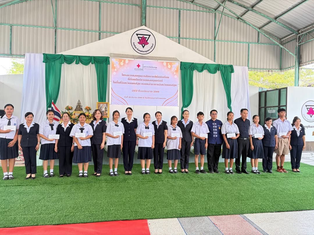 กาชาดจังหวัดนครปฐม มอบทุนการศึกษาแก่เด็กนักเรียนที่เรียนดีแต่ขาดแคลนทุนทรัพย์ ของเหล่ากาชาดจังหวัดนครปฐม ประจำปีงบประมาณ พ.ศ. 2569