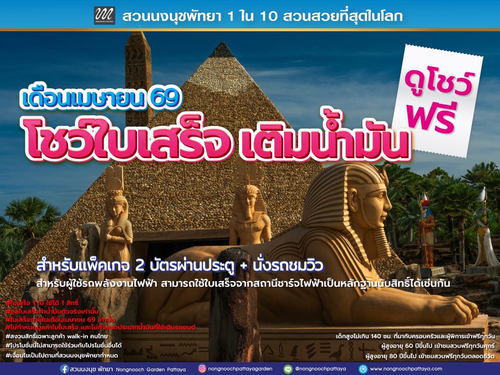 โปรโมชั่นดังกล่าวจัดขึ้นระหว่างวันที่ 1 – 30 เมษายน 2569 สำหรับนักท่องเที่ยวชาวไทยที่เดินทางมาแบบ Walk-in สามารถรับสิทธิ์ ชมการแสดงศิลปวัฒนธรรมไทย และการแสดงของน้องช้างแสนรู้ เพียงแสดง ใบเสร็จเติมน้ำมันภายในเดือนเมษายน สำหรับผู้ที่ซื้อ บัตรผ่านประตู (Package 2)