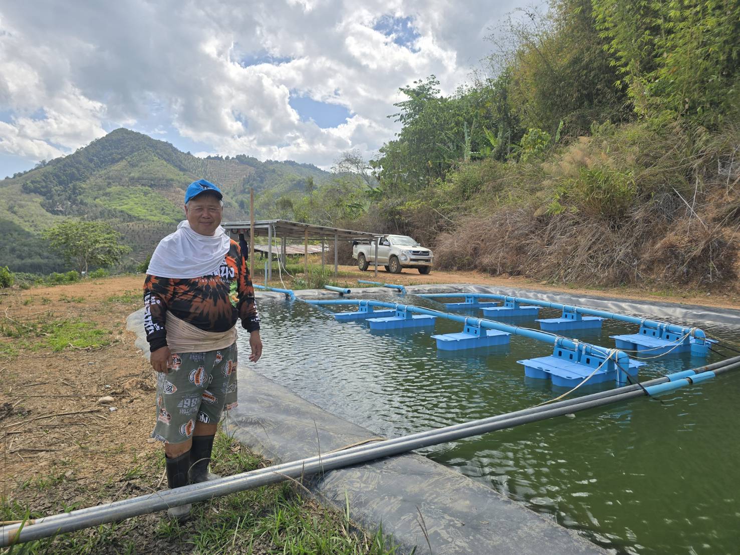 จนกระทั้งมีตัวแทนฝ่ายขาย บริษัทเอกชน มานำเสนอระบบควบคุมเครื่องสูบน้ำโซลาร์เซลล์ เลยตัดสินใจมาติดตั้งที่สวนทุเรียนของตน ในระยะแรกได้ดำเนินการติดตั้งเครื่องสูบน้ำโซลาร์เซลล์พร้อมอุปกรณ์ติดตั้งแผงโซล่าเซลล์ จำนวน 4 เครื่อง ลงบ่อพักน้ำสวนทุเรียน จำนวน 2 บ่อ ในราคา 550,000 บาท ซึ่งหลังใช้ได้ไม่นาน ประหยัดค่าไฟและค่าน้ำมันได้ 100% ช่วยลดต้นทุนในระยะยาวได้ดี ติดตั้งง่ายในพื้นที่ห่างไกลไฟฟ้า เหมาะกับสวนหรือพื้นที่ที่ไฟฟ้าเข้าไม่ถึง แก้ปัญหาไฟดับบ่อย หรือแรงดันไฟฟ้าไม่เสถียร เป็นพลังงานสะอาดเป็นมิตรต่อสิ่งแวดล้อม การบำรุงรักษาน้อยไม่ต้องเสียค่าน้ำมันเครื่องหรือน้ำมันเชื้อเพลิงเหมือนเครื่องสูบน้ำแบบเครื่องยนต์ และมีอายุการใช้งานนานถึง 20-25 ปี สามารถสูบน้ำดูแลสวนทุเรียนในพื้นที่ 200 ไร่ของ ได้ตลอดทั้งฤดูกาล ในอนาคตจะสร้างบ่อพักน้ำสวนทุเรียน เพิ่มอีก 3 บ่อ และติดตั้งเครื่องสูบน้ำโซลาร์เซลล์เพิ่มอีก จึงอยากเชิญชวนเพือนเกษตรกรหันมาใช้เครื่องสูบน้ำโซลาร์เซลล์ ลดต้นทุนในการใช้น้ำมันเชื้อเพลิง ลดต้นทุนการเกษตรได้เป็นอย่างดี