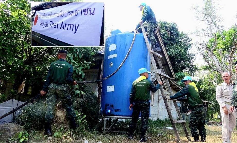 ชาวบ้าน ต.กะลุวอ อ.เมืองนราฯ เดือดร้อนหนักจากภัยแล้ง น้ำบาดาลแห้งเหือด กองพันทหารที่ 1 กรมทหารราบที่ 151 ค่ายกัลยาณิวัฒนา นำน้ำ 12,000 ลิตร ออกแจกจ่ายบรรเทาความเดือดร้อน