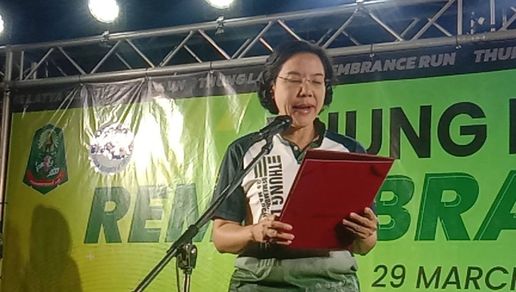 จากนั้น นางสาววริษฐา สงวนเสริมศรี ผู้ว่าราชการจังหวัดกาญจนบุรี ได้เป็นประธานกล่าวเปิดกิจกรรม “วิ่งรำลึก 240 ปี เกียรติภูมิทุ่งลาดหญ้า” THUNG LATYA REMEMBRANCE RUN 29 MARCH 2026 และให้โอวาทกับคณะนักวิ่งและประธานปล่อยขบวนนักวิ่ง พร้อมกับเข้าร่วมกิจกรรมโดยลงวิ่งในประเภท 5 กม.ด้วย