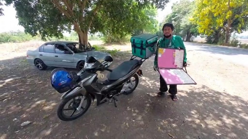 ลพบุรี – หนุ่มไลน์แมนสู้ชีวิตเลี้ยงลูกสองคนส่งของแล้วขายสลากกินแบ่งไปด้วย