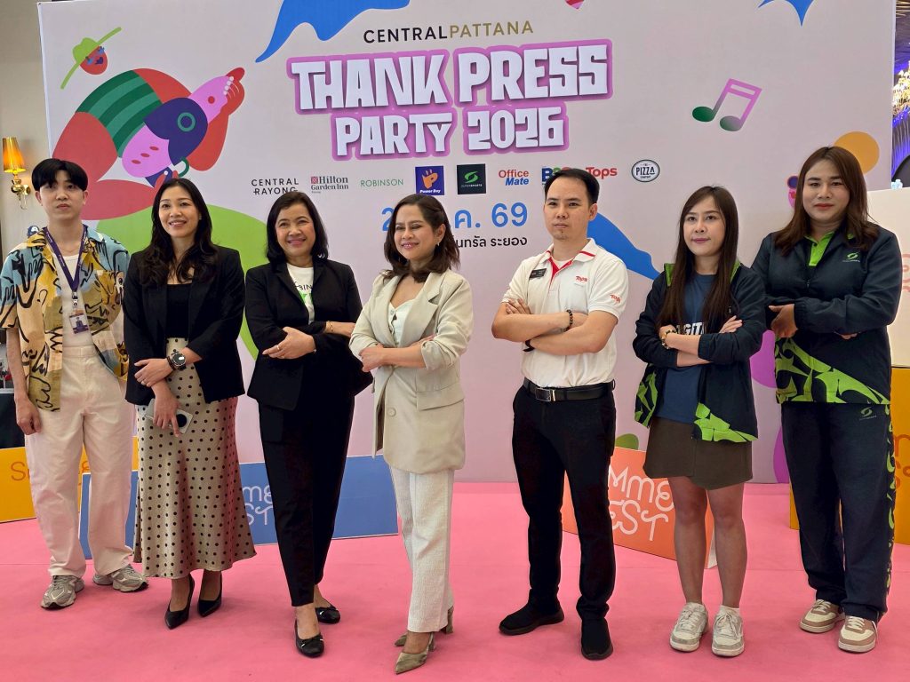 เมื่อเวลา 17.35 น. วันที่ 29 มี.ค.69 ที่ลานกิจกรรมหน้าโรงหนังเมเจอร์ซีนีเพล็กซ์ ชั้น 3 ศูนย์การค้าเซ็นทรัลระยอง ต.เชิงเนิน อ.เมือง จ.ระยอง น.ส.ยอดสร้อย ปัญณะสมบูรณ์ ผู้จัดการทั่วไป ศูนย์การค้าเซ็นทรัลระยอง นำผู้แทนบริษัทในเครือ ร่วมแถลงข่าวชวนช้อป กิน เที่ยวสนุกให้ลั่น ที่เซ็นทรัลทั่วไทย วันที่ 13 มี.ค.-10 พ.ค.นี้ Summer Fest 2026 ปั้น Soft power ขับเคลื่อนเศรษฐกิจสร้างสรรค์ดันระยองสู่ Tourist Summer Destination “CULTURETAINMENT” “วัฒนธรรม ดนตรี แฟชั่น อาหาร ไลฟ์สไตล์ Soft power ที่แข็งแกร่ง” โดยจะมีการจัดกิจกรรมกระตุ้น “ช้อป กิน เที่ยว” ในห้วงระยะเวลาดังกล่าวอย่างต่อเนื่อง ห้วงวันที่ 6-22 เม.ย.พบกับ “มหกรรม Food festival สงกรานต์สาดความอร่อยทุกเมนู” “พบกับร้านดังกว่า 60 ร้านค้า, วันที่ 10-22 เม.ย. Amazing Pet Fun fest เอาใจกลุ่มแฟมิลี่ กับงานรวมความน่ารักของเหล่าสัตว์เลี้ยง, วันที่ 8-21 เม.ย. Robinson ชวนช้อปสนุก ลดสนั่น อัพเดตเทรนด์แฟชั่นกับนักแสดงหนุ่มหล่อ “ซี เดชชาต”, วันที่10-16 เม.ย. ชวนเสริมสิริมงคลสรงน้ำพระ และร่วมชมการแสดงแลกเปลี่ยนวัฒนธรรมนานาชาติ และชมขบวนเยาวชนไทย ห่มสไบใส่ยีนส์กว่า 300 ชีวิต โดยศูนย์การค้าเซ็นทรัล ระยอง จัดร่วมกับการกีฬาแห่งประเทศไทย จังหวัดระยอง, วันที่ 13-18 เม.ย. พบกับงาน “Rayong Songkran Festival” เทศกาลมหาสงกรานต์สุดยิ่งใหญ่ที่เปียกที่สุดในระยอง จัดเต็มกับระบบแสง สี เสียง พร้อมด้วยวอเตอร์เอฟเฟคสุดอลังการ และคอนเสิร์ตจากกองทัพศิลปินดังทุกคืน “ซัมเมอร์นี้ ช้อป กิน เที่ยว สนุกให้ลั่นที่ เซ็นทรัลระยอง”.