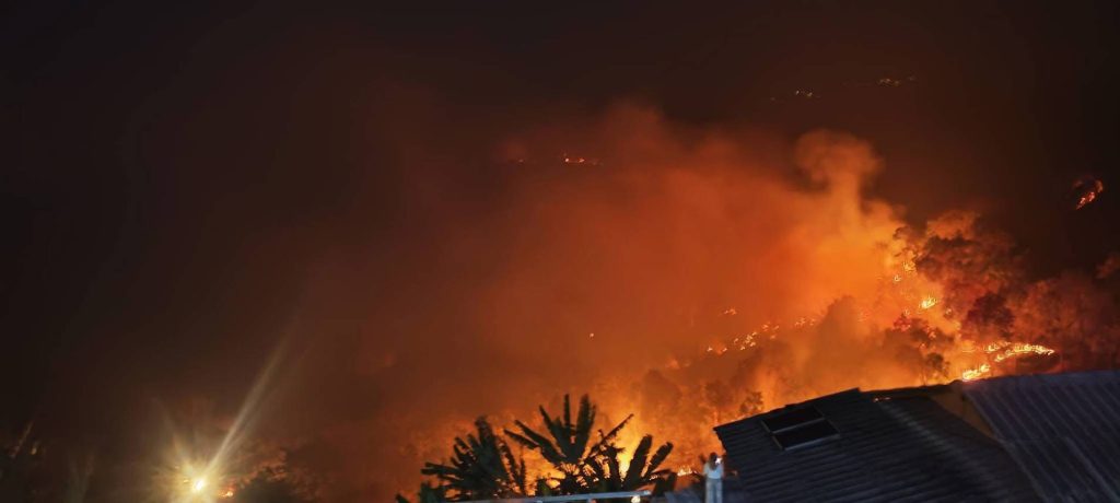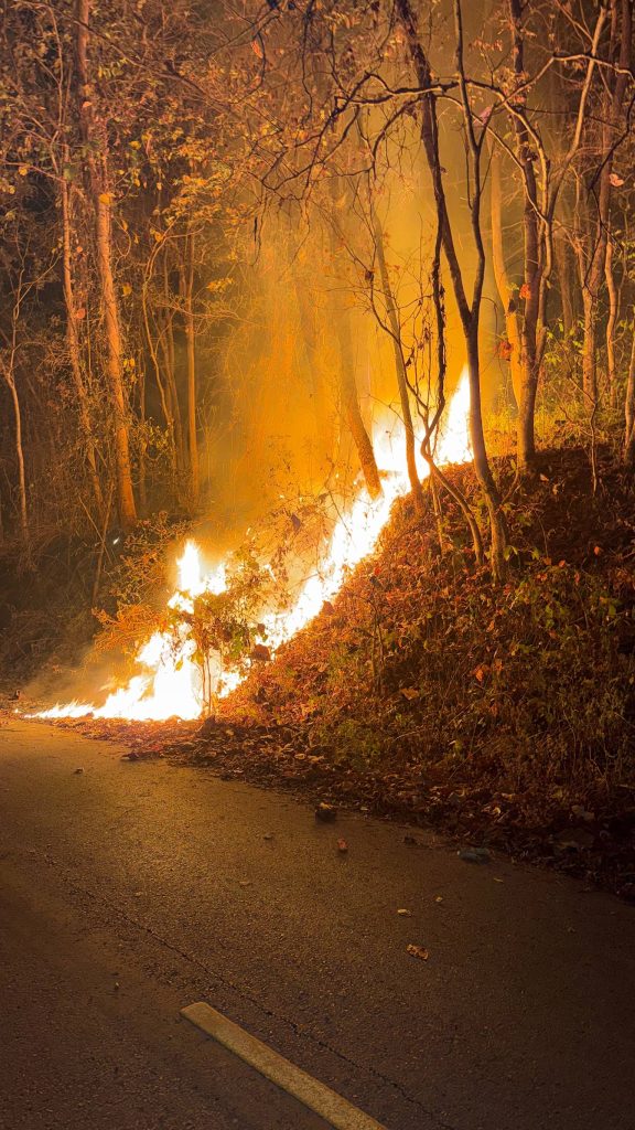 ไฟไหม้ป่ากลางดึกนายอำเภอรุดไปอำนวยการอย่างเร่งด่วน ส่วน ที่ อ แม่แตง เพจ ที่พัก ชื่อดัง “บ้านสวนแม่นาหมี่โฮมสเตย์ บ้านห้วยกุ๊บกั๊บ” โพสต์ข้อความและภาพไฟป่า บริเวณที่พักจุดชมทะเลหมอก กลายเป็นทะเลไฟผ่าหมอก ควันไฟ