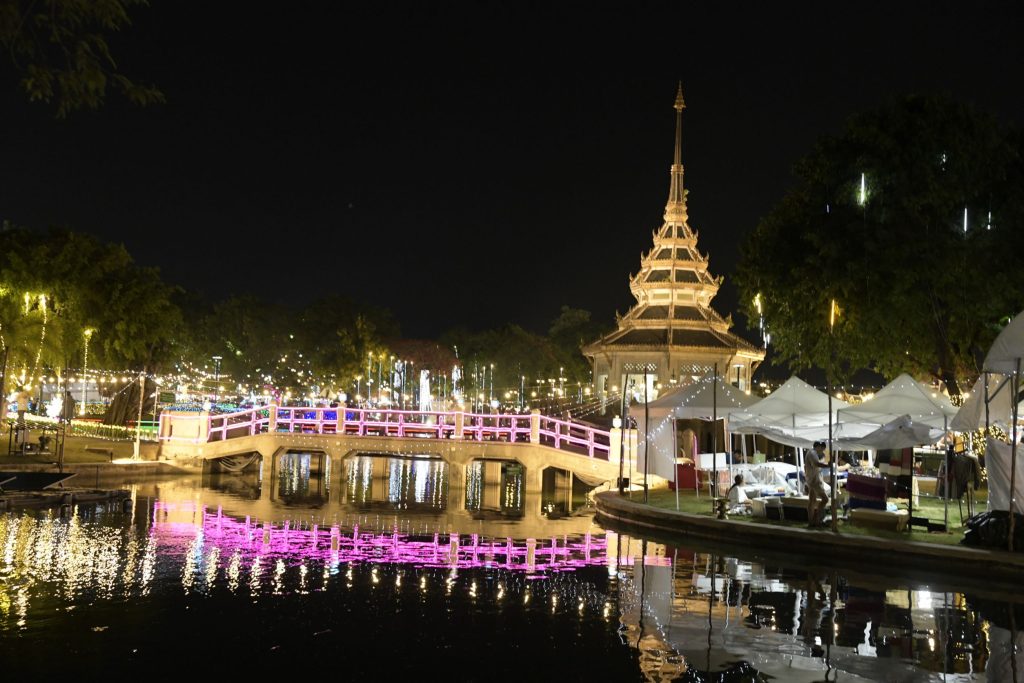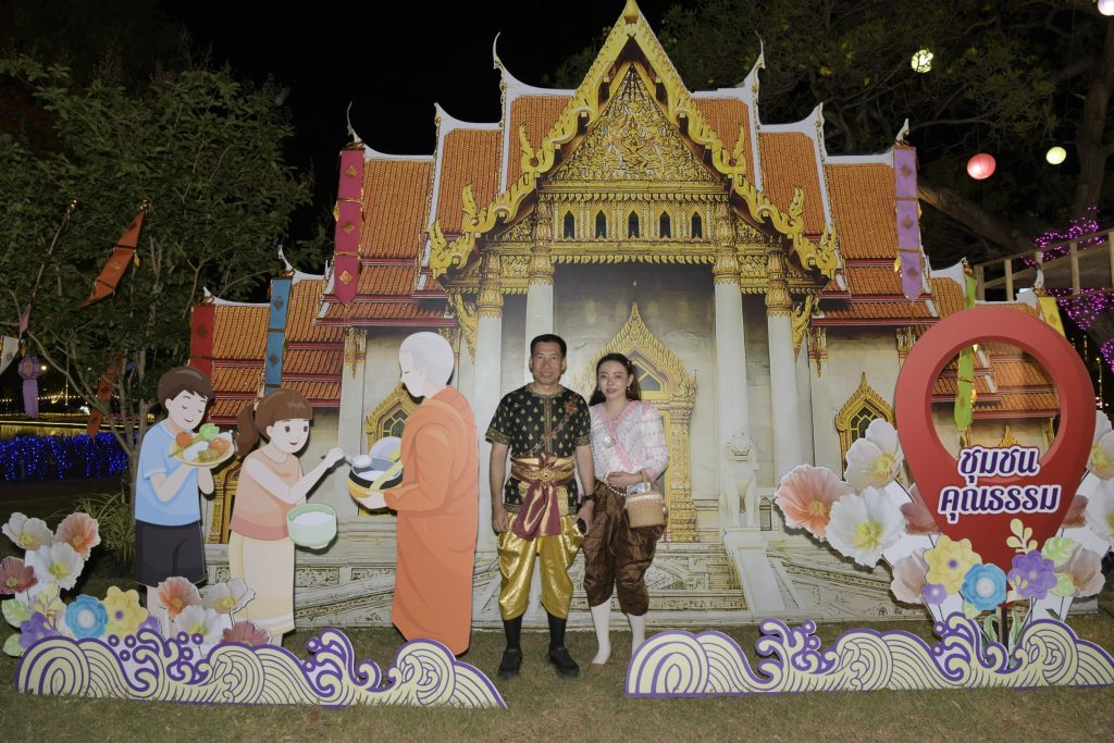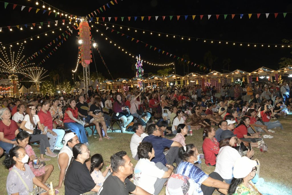 ไฮไลท์สำคัญของกิจกรรมในค่ำคืนนี้ ประกอบด้วยการประกวดไม้ประดับ “แอนทูเรียมโชคเก้าชั้น” จำนวน 5 ประเภท และการประกวดพับบัวบูชา เพื่อส่งเสริมทักษะฝีมือและงานอดิเรกที่มีคุณค่า โดยได้รับเกียรติจาก นางจิราภรณ์ โมสิกรัตน์ นายกเหล่ากาชาดจังหวัดนนทบุรี เป็นผู้มอบรางวัลให้แก่ผู้ชนะเลิศการประกวดทุกประเภท นอกจากนี้ ภายในงานยังมีการแสดงศิลปวัฒนธรรมที่หลากหลาย อาทิ การแสดงโขน ตอน “ลักสีดา” โดยกลุ่มนักเรียน, การแสดงมินิโฟล์คซองจากศิลปิน “โฟน พีท จิน” SN1 Entertainment และคอนเสิร์ตจากศิลปิน “ลีโอ อธิป” รวมถึงการแสดงพื้นบ้านขับร้องเพลงลูกทุ่งและรำวงที่สร้างความสนุกสนานให้กับผู้ร่วมงาน