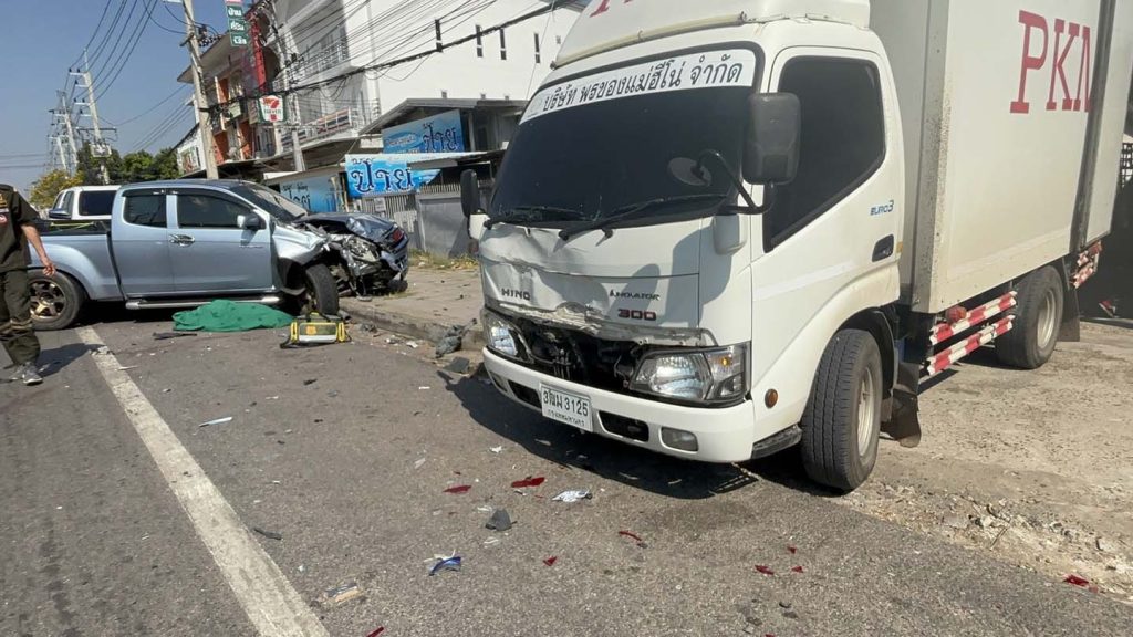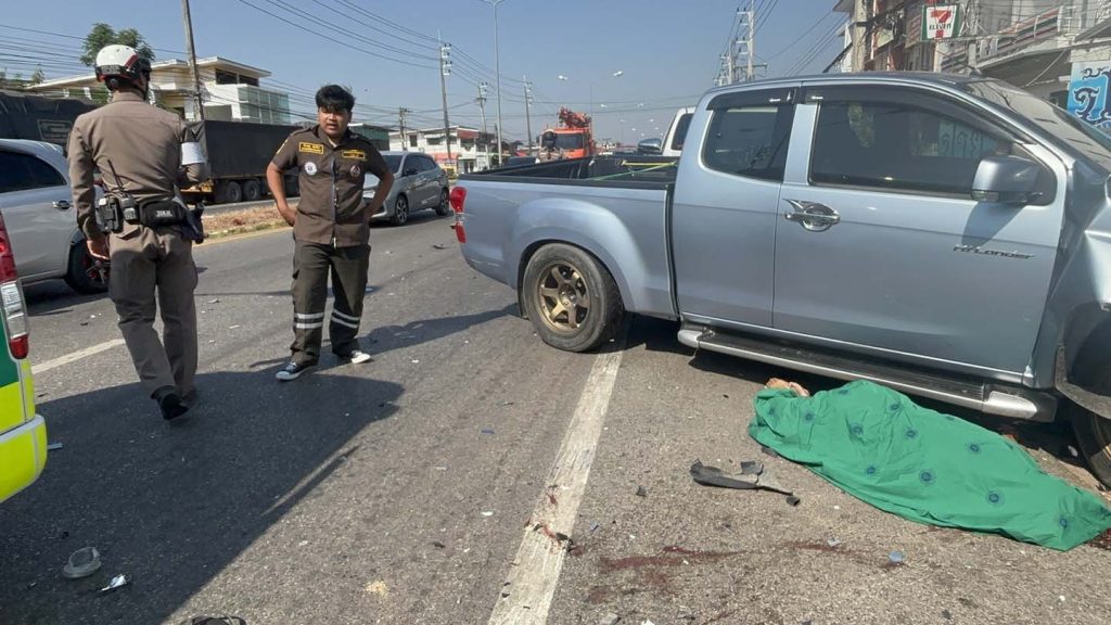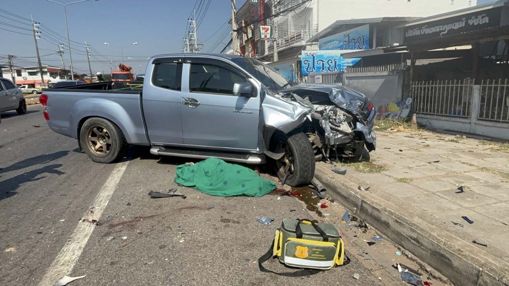 มุกดาหาร หนุ่มเมาซิ่งข้ามเกาะ พุ่งชน จยย.ดับ 1 ราย รถยนต์พังเสียหาย 5 คัน
