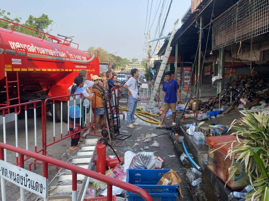 ชัยภูมิ นอภ.ลุยตรวจเหตุไฟไหม้ร้านขายสินค้าเบ็ดเตล็ดกลางตลาดสดพร้อมหาทางช่วยเหลือยันไม่ใช่ร้านจำหน่ายพลุ