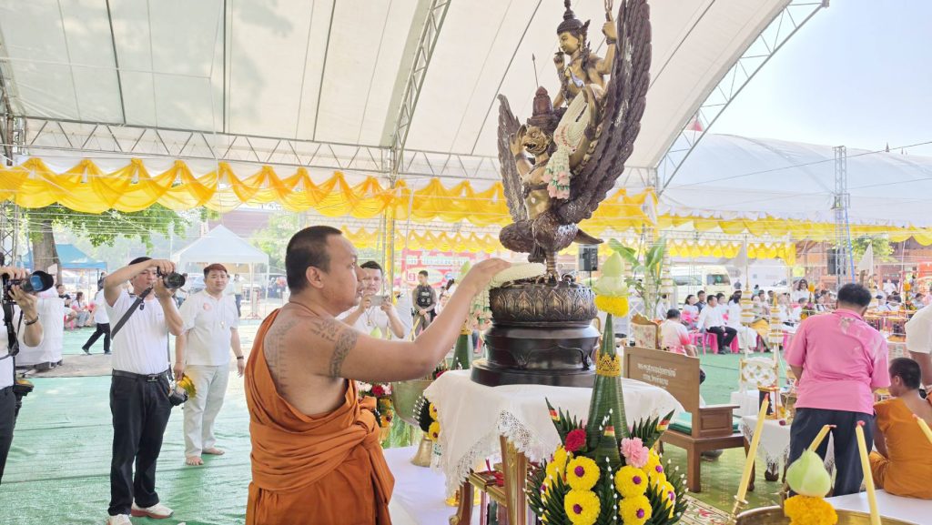 สุพรรณบุรี สาธุชนกว่า5000แห่ร่วมพิธีบวงสรวงปลุกเสกท้าวเวสสุวรรณหน้าทองคำ