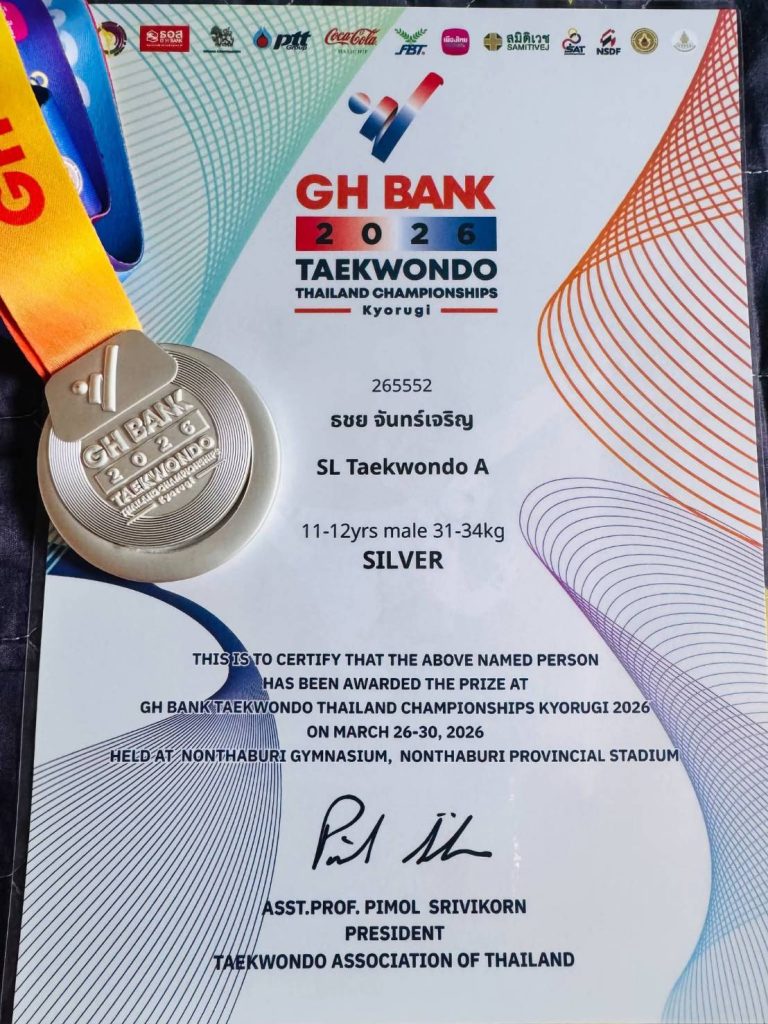 สร้างความภาคภูมิใจให้ชาวสิงห์บุรีอย่างยิ่ง สำหรับ “น้องธชย จันทร์เจริญ” นักเรียนชั้น ป.5/7 โรงเรียนอนุบาลสิงห์บุรี ที่โชว์ฟอร์มสุดแกร่งบนเวทีระดับประเทศ ในการแข่งขัน G H Bank เทควันโดชิงชนะเลิศแห่งประเทศไทย ประจำปี 2569 (ประเภทต่อสู้) ซึ่งจัดขึ้นระหว่างวันที่ 26 – 30 มีนาคม 2569 ณ อาคารนนทบุรียิมเนเซียม สนามกีฬาองค์การบริหารส่วนจังหวัดนนทบุรี